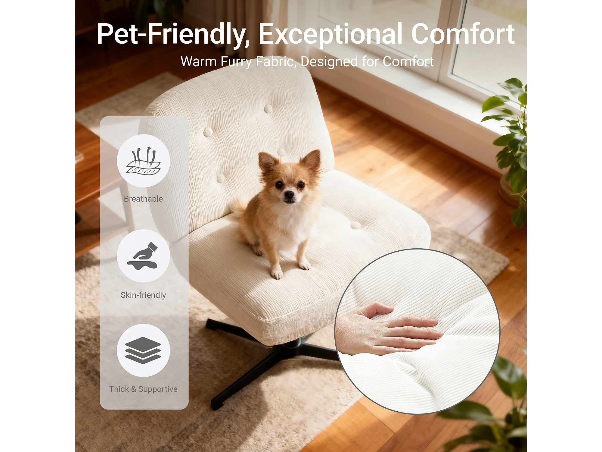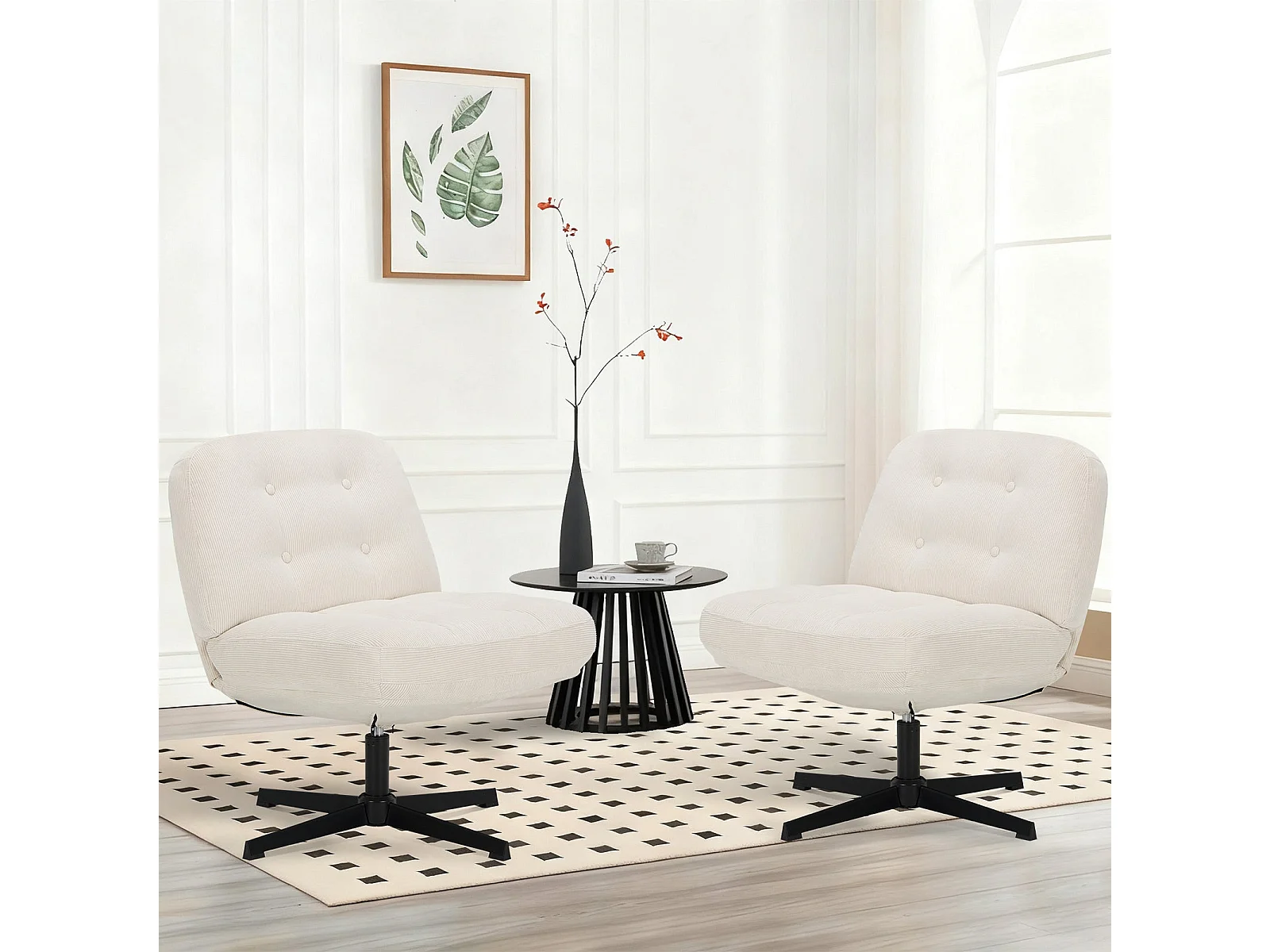 Chaise de bureau design sans accoudoirs surpiqûres verticales tissu blanc cassé
