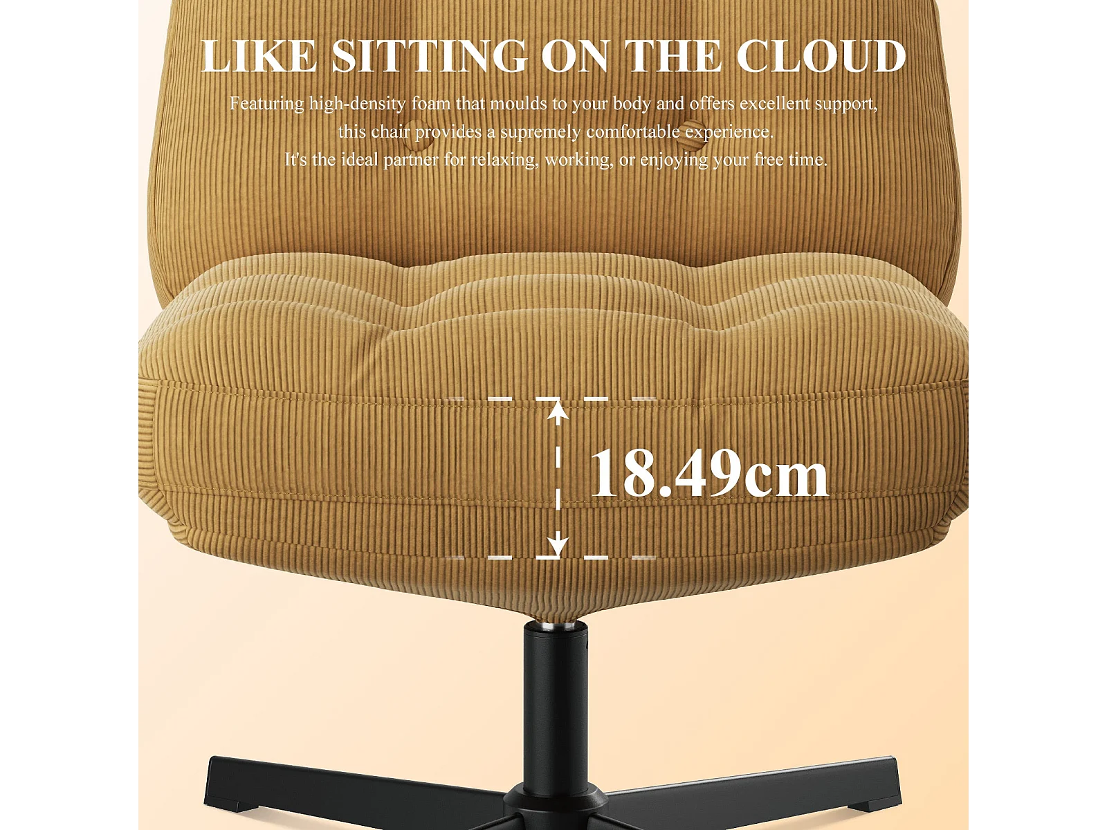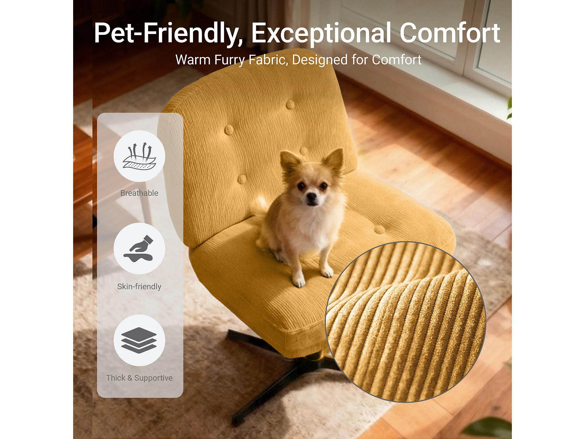 Chaise de bureau - Assise large en mousse mémoire, confort et soutien, usage bureau et maison - Jaune