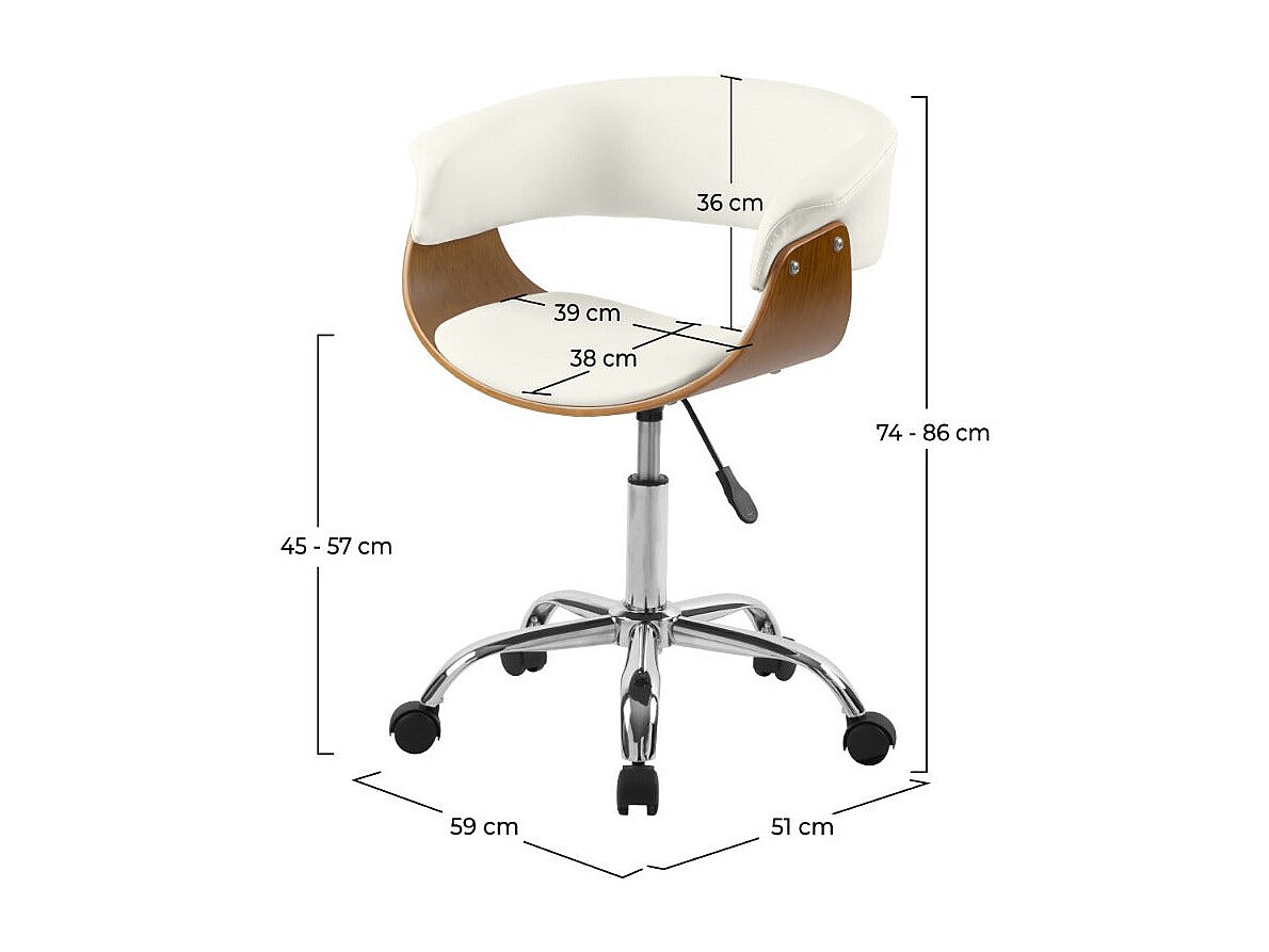 Chaise de bureau pivotante en bois et PU blanc - Basile