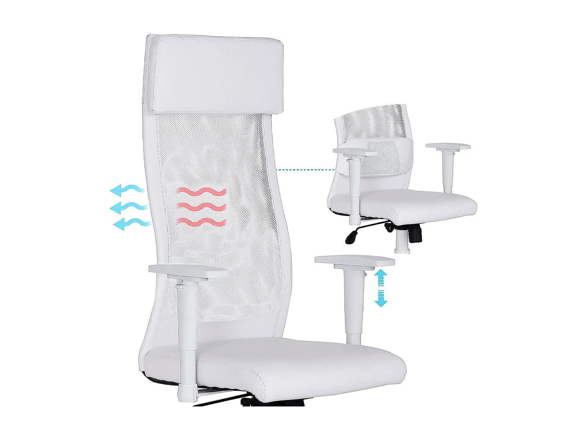 Chaise de bureau blanche respirante avec coussin lombaire pour bureau moderne