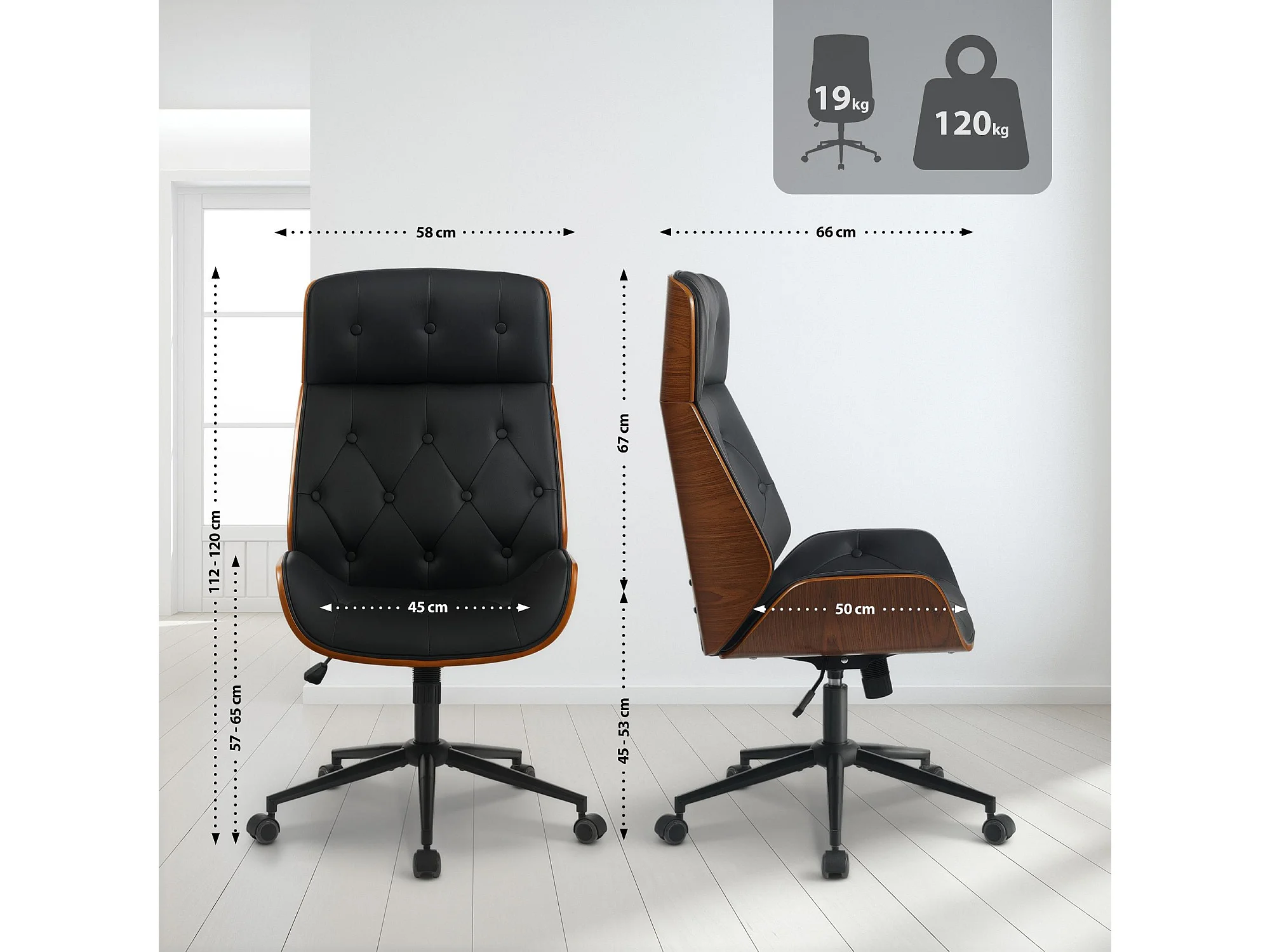 Chaise de bureau - Bois - Noir - Martil