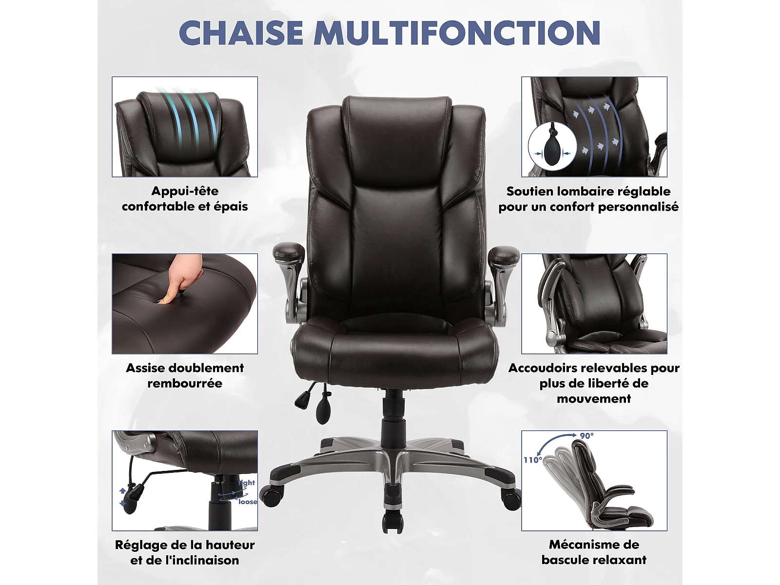 Chaise de bureau - Chaise de Bureau ergonomique en similicuir,Dossier Inclinable, Accoudoirs et Hauteur Réglables - Marron