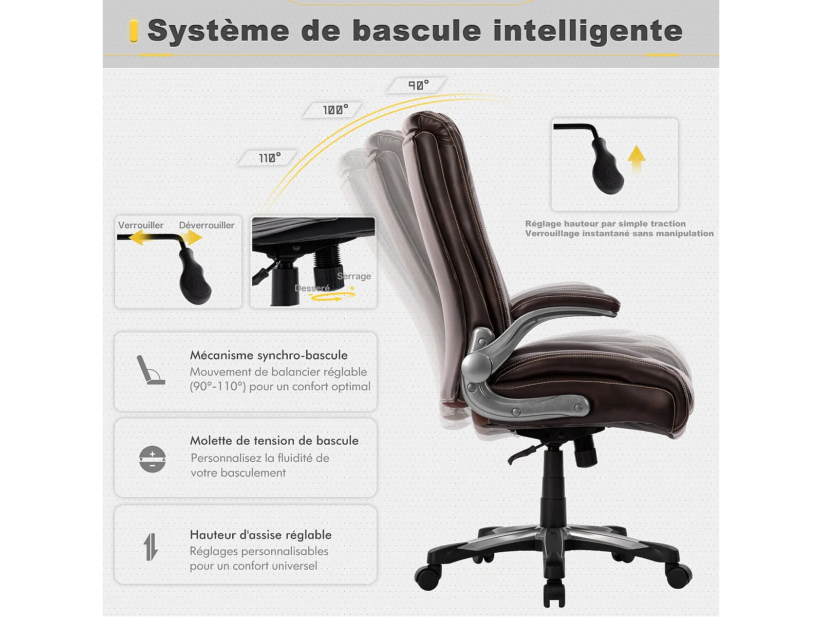 Chaise de bureau – Chaise de bureau ergonomique Robuste, charge maximale 181 kg - Marron