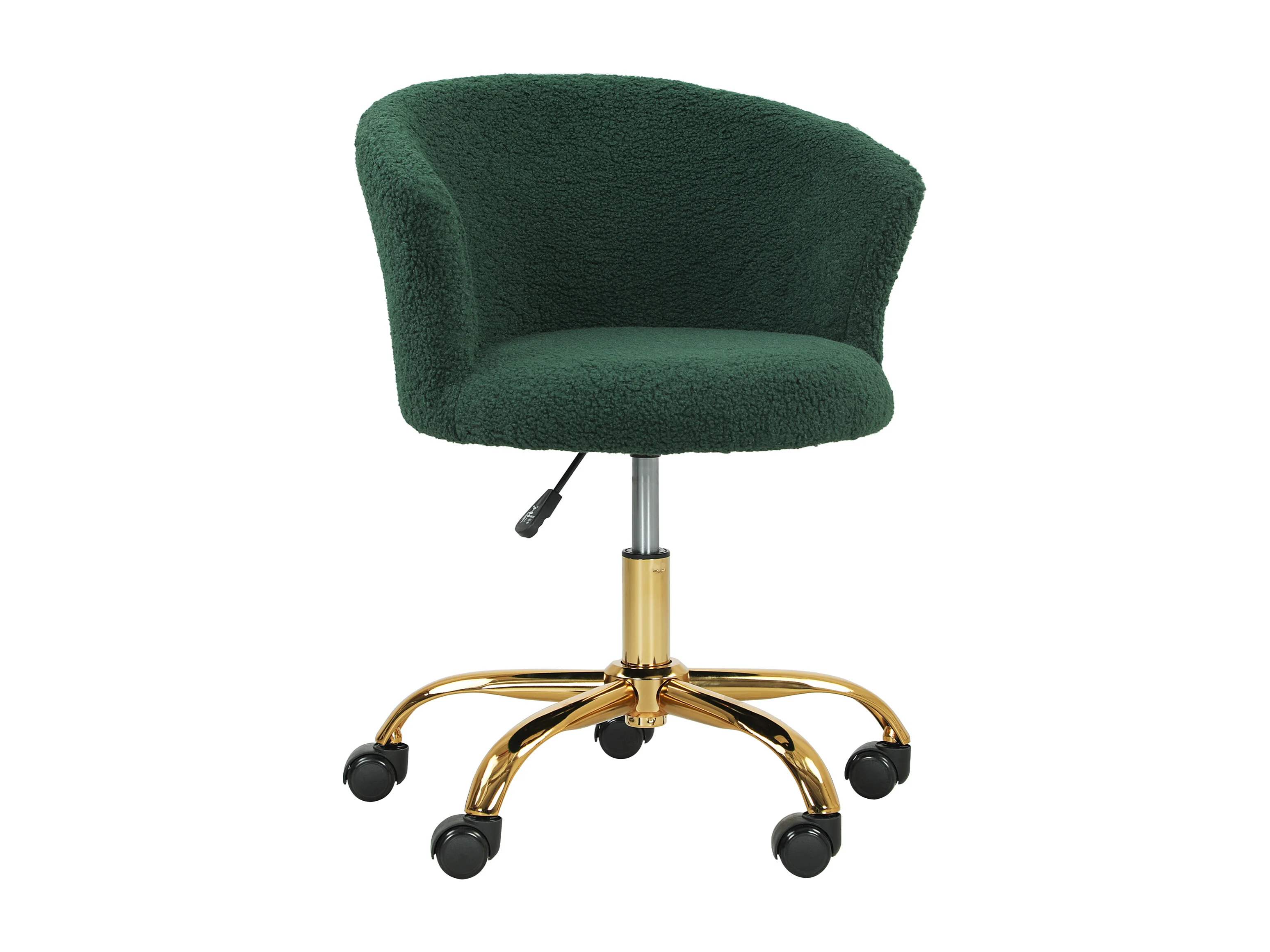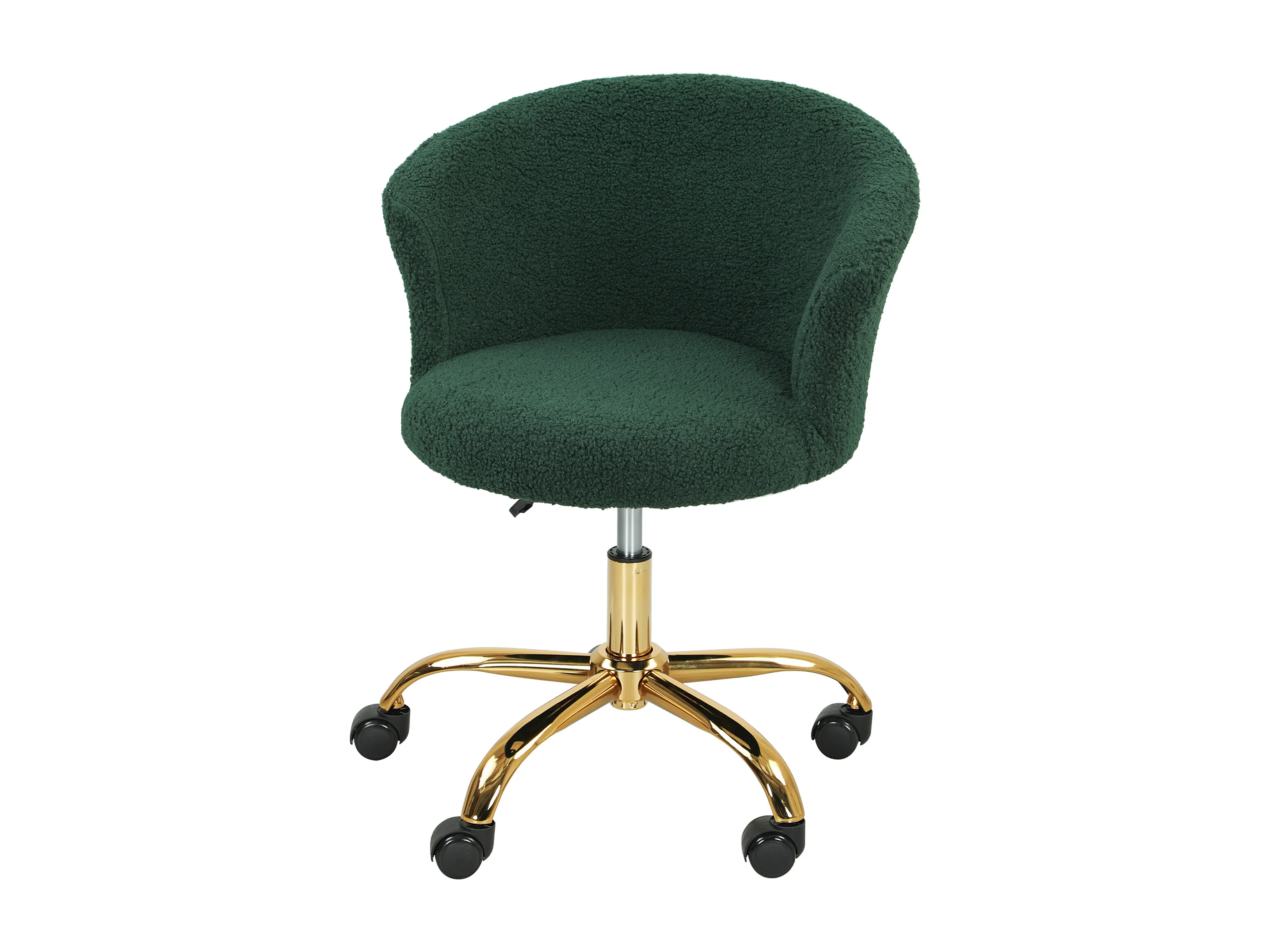 Chaise de bureau design effet courte laine bouclée piètement métal doré vert