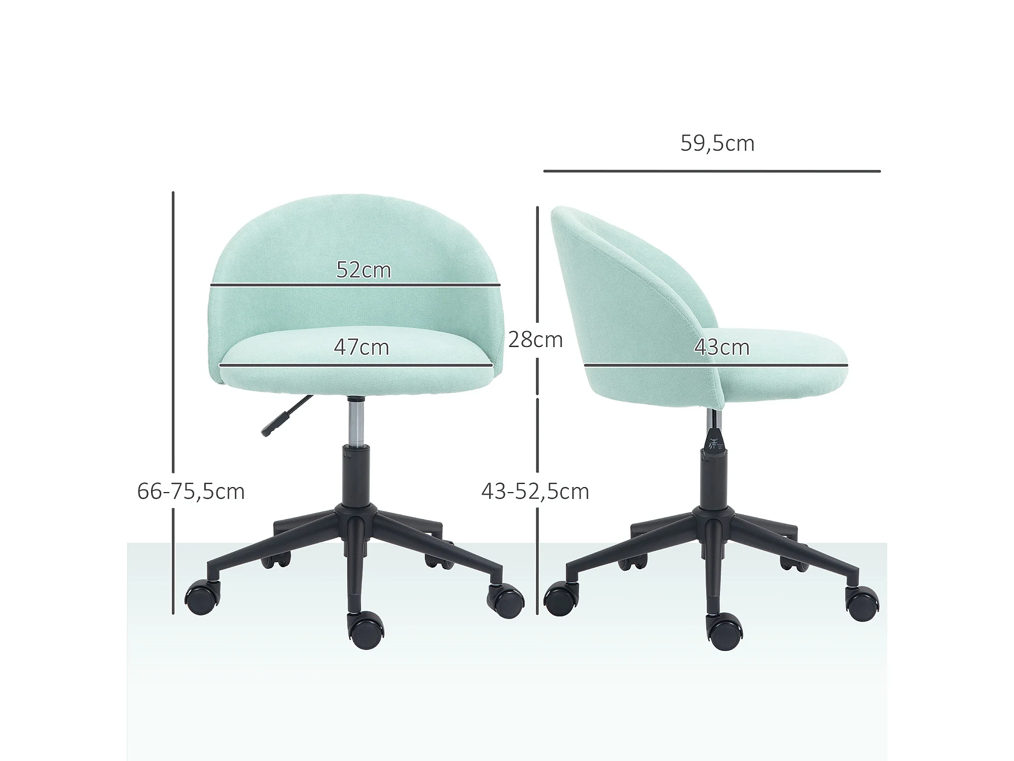 Chaise de bureau Dcampan, Chaise de travail à roulettes, Siège de bureau ergonomique, 66x59h98 cm, Bleu