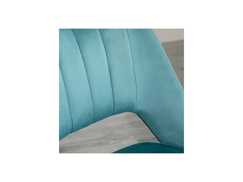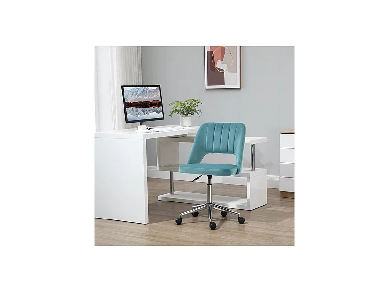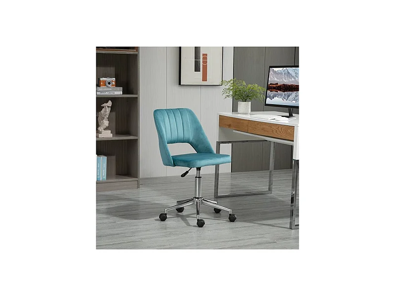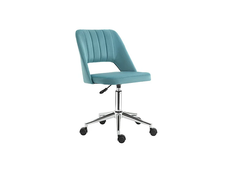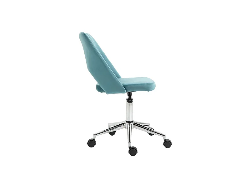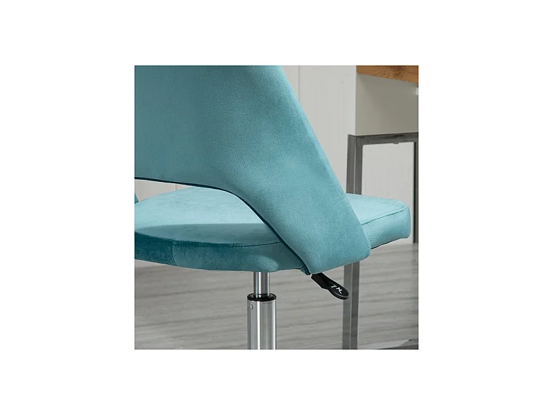 Chaise de bureau ronde à roulettes en velours cyan. Pam. L 59 x P 60 x H 79 / 89cm.