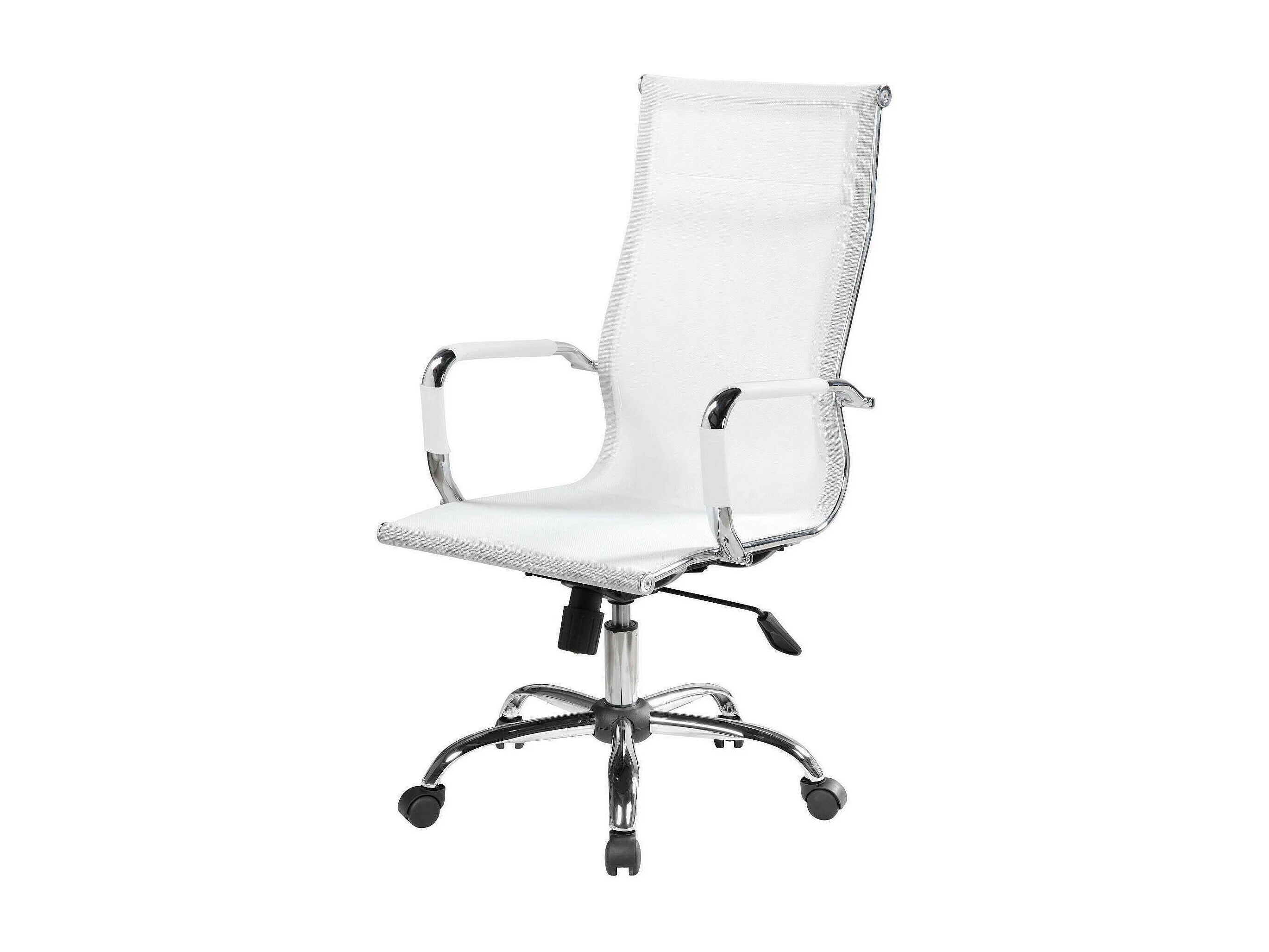 Chaise de bureau Dfrosi, Chaise de direction avec accoudoirs, Chaise de bureau ergonomique, Blanc, 63x54h106/116 cm