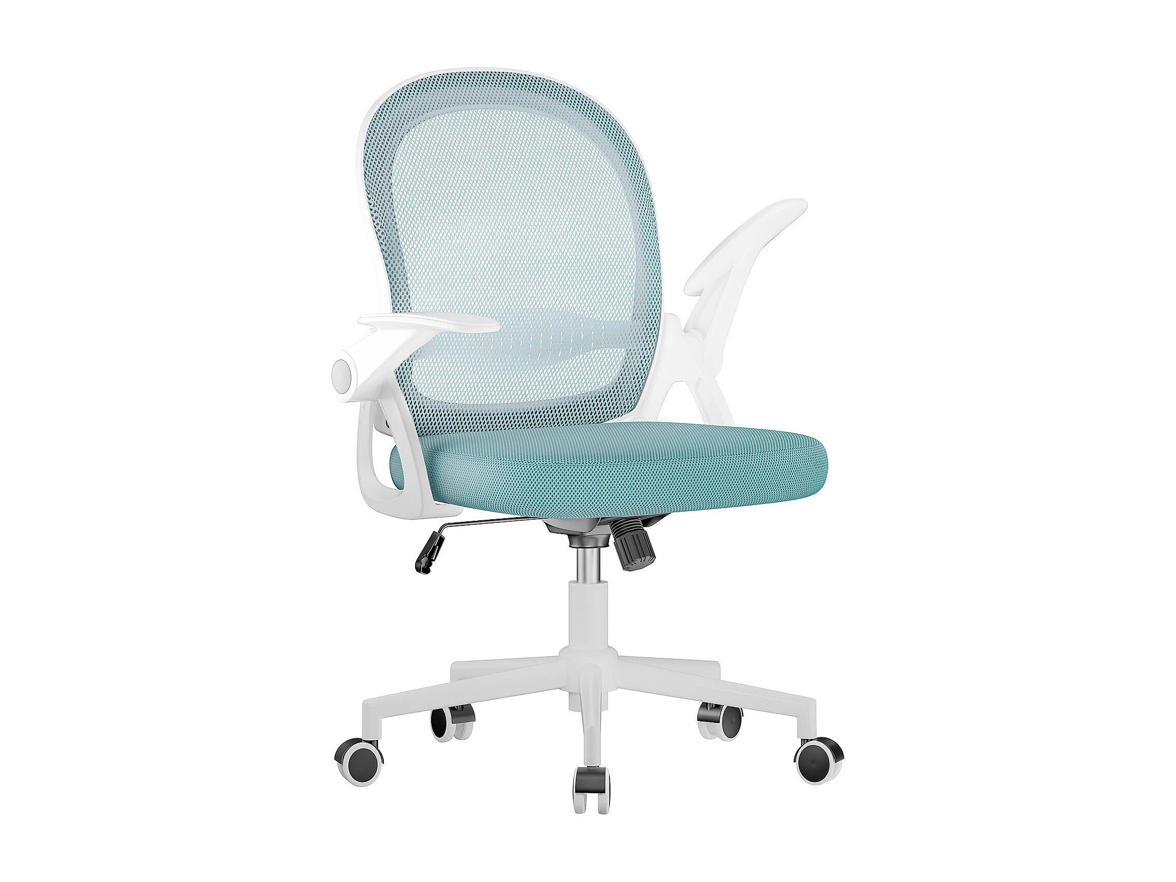 Chaise de bureau ergonomique à dossier moyen en maille, avec accoudoirs rabattables, soutien lombaire et fonction pivotante