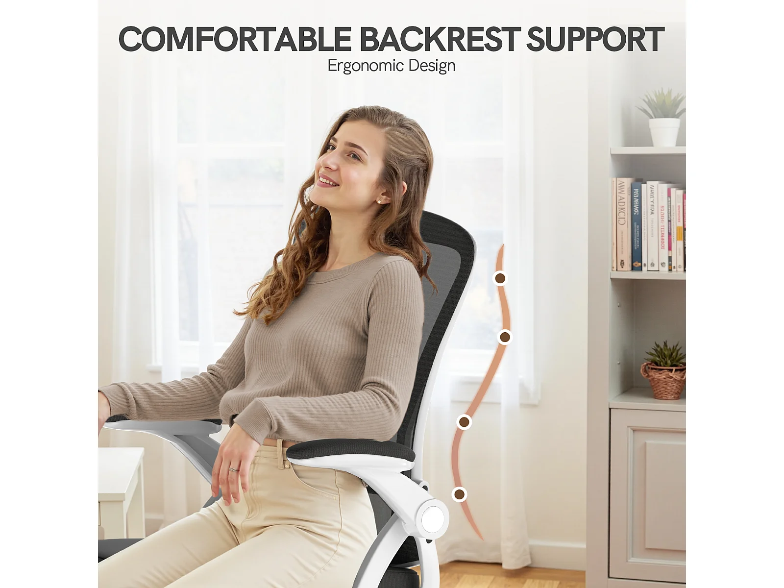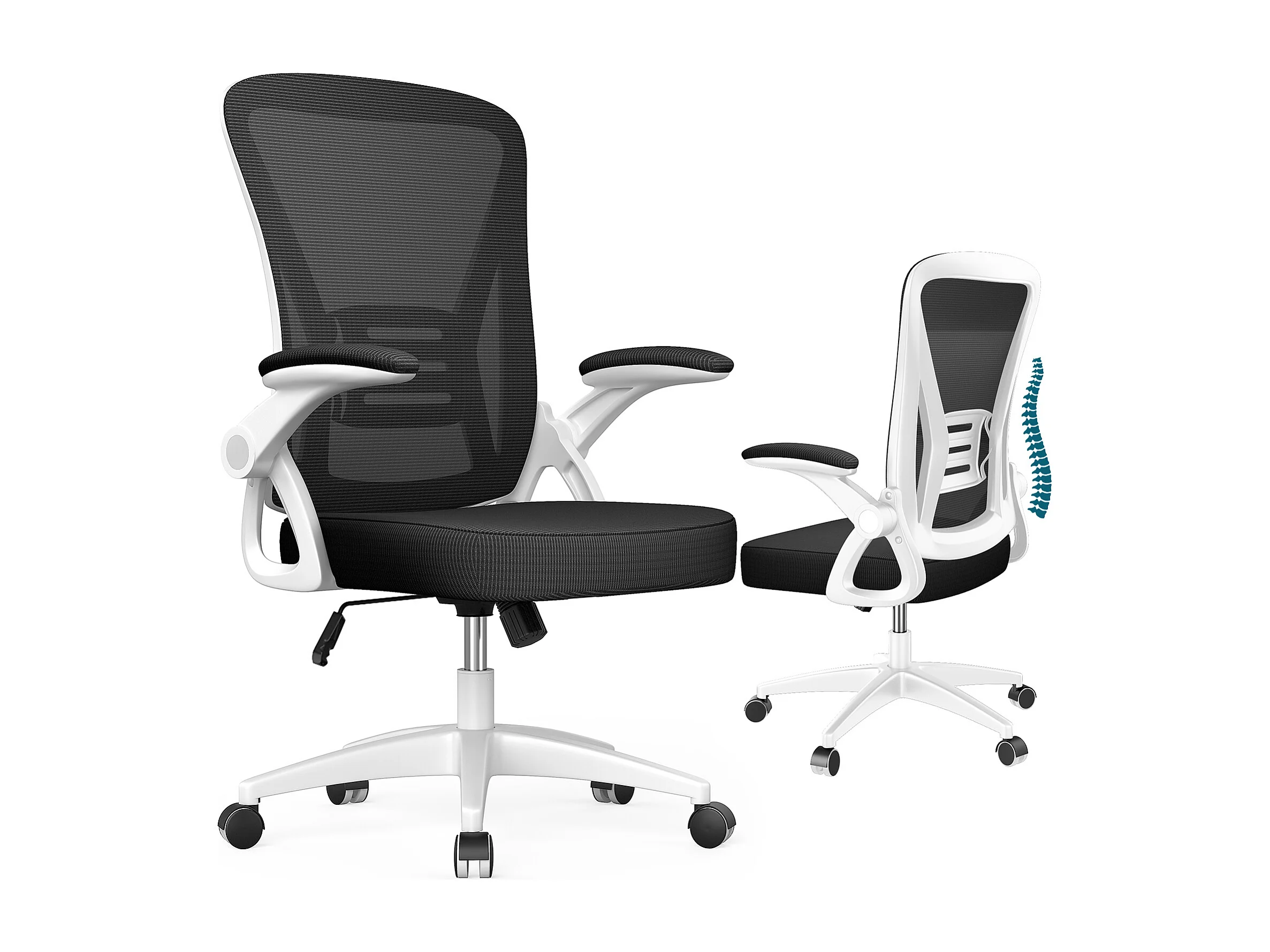 Chaise de bureau ergonomique avec accoudoirs rabattables à 90° et soutien lombaire, chaise de bureau à hauteur réglable avec coussin d'assise rembourré