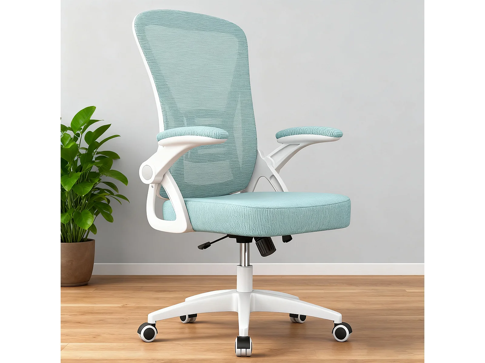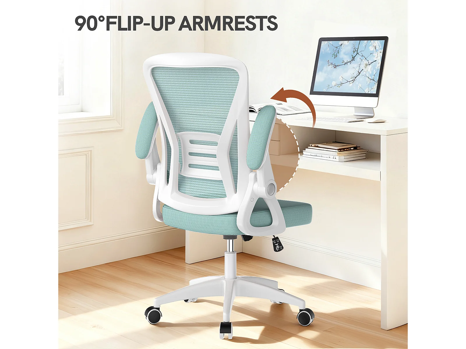 Chaise de bureau ergonomique avec accoudoirs rabattables à 90° et soutien lombaire, chaise de bureau à hauteur réglable avec coussin d'assise rembourré