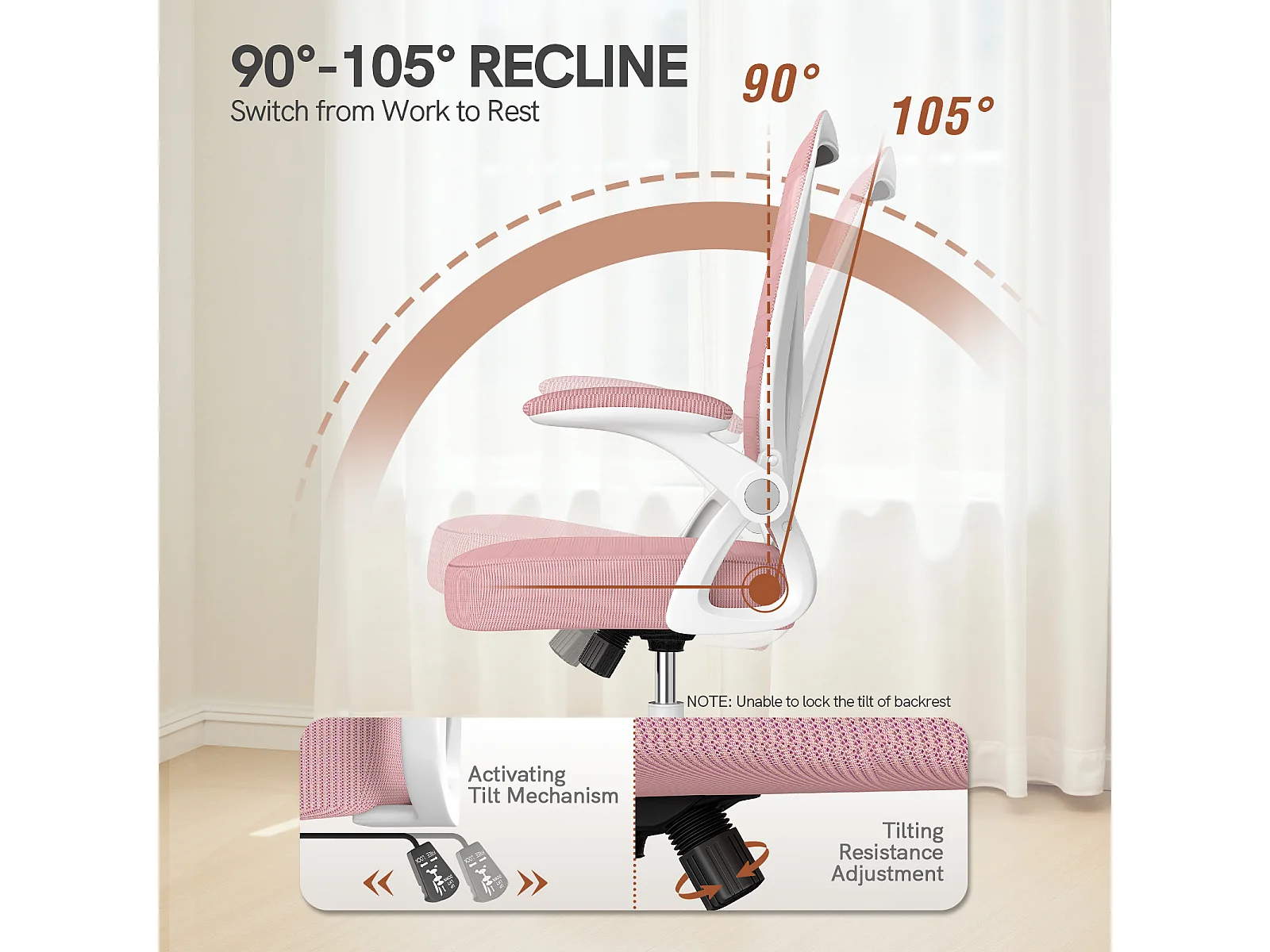 Chaise de bureau ergonomique avec accoudoirs rabattables à 90° et soutien lombaire, chaise de bureau à hauteur réglable avec coussin d'assise rembourré