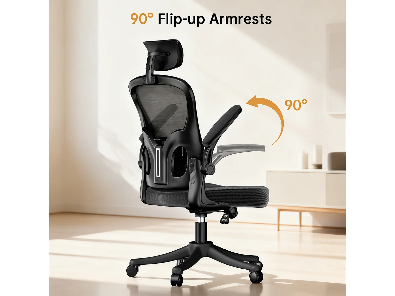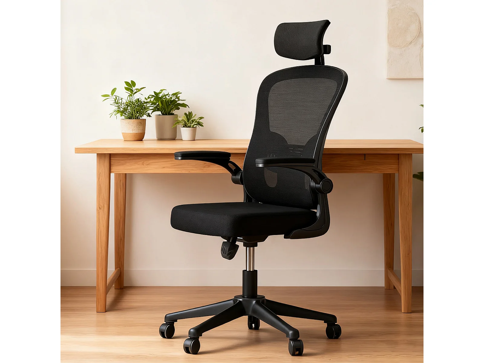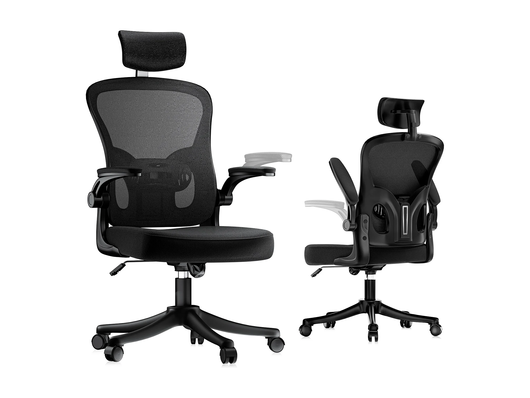 Chaise de bureau ergonomique avec hauteur réglable, appui-tête, accoudoirs rabattables et soutien lombaire
