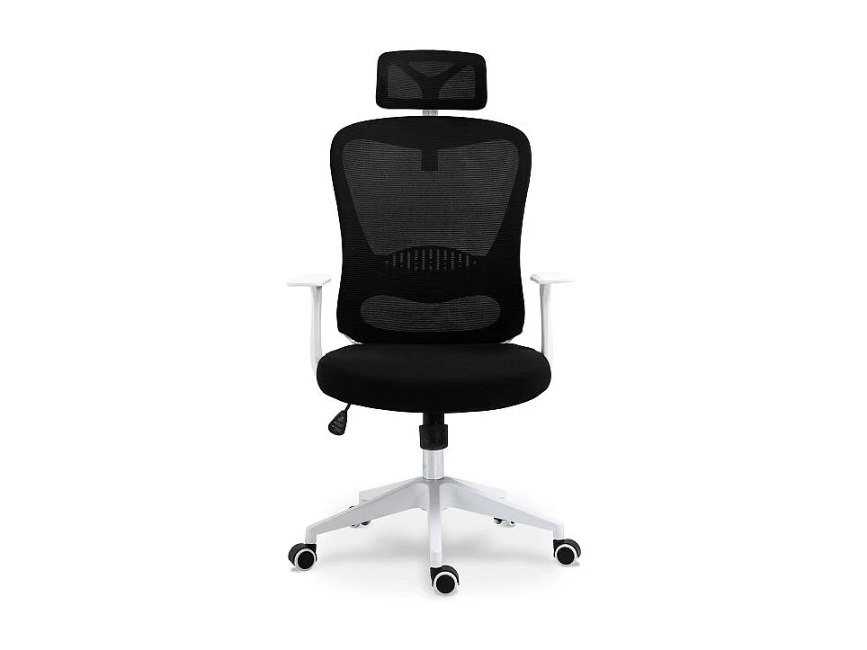 Chaise de bureau ergonomique noire et blanche avec appuie-tête, dossier respirant et hauteur réglable