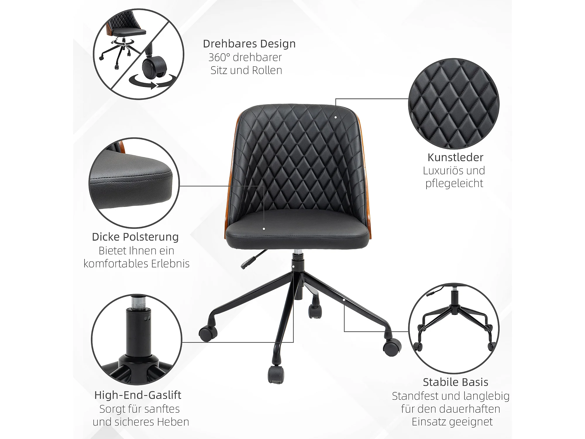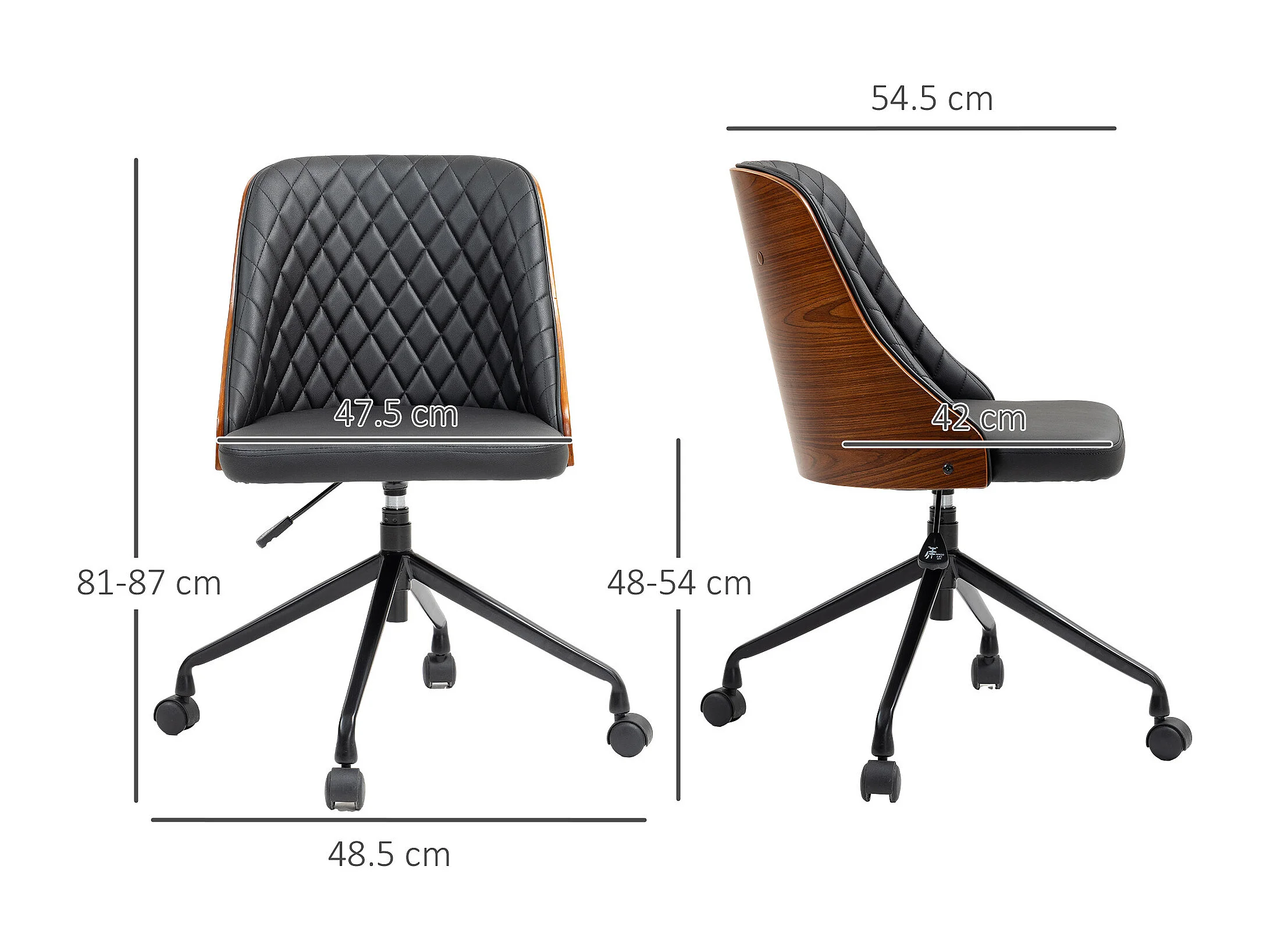 Chaise de bureau ergonomique sans accoudoirs, réglable en hauteur, en simili cuir, noir (48.5x54.5x81-87 cm)