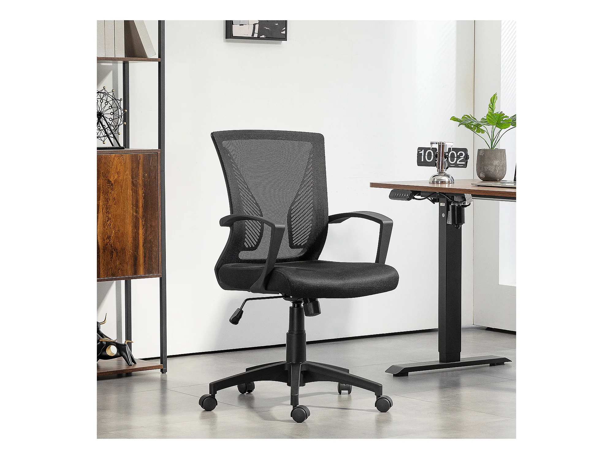 Chaise de bureau Albany, Chaise de direction en maille avec accoudoirs, Siège de bureau ergonomique, 60x54h90/98 cm, Noir