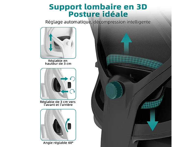 Chaise de bureau,Fauteuil de bureau,Capacité De Charge De 150 Kg,Accoudoirs Rabattables À 90°Et Soutien Du Dossier Réglable