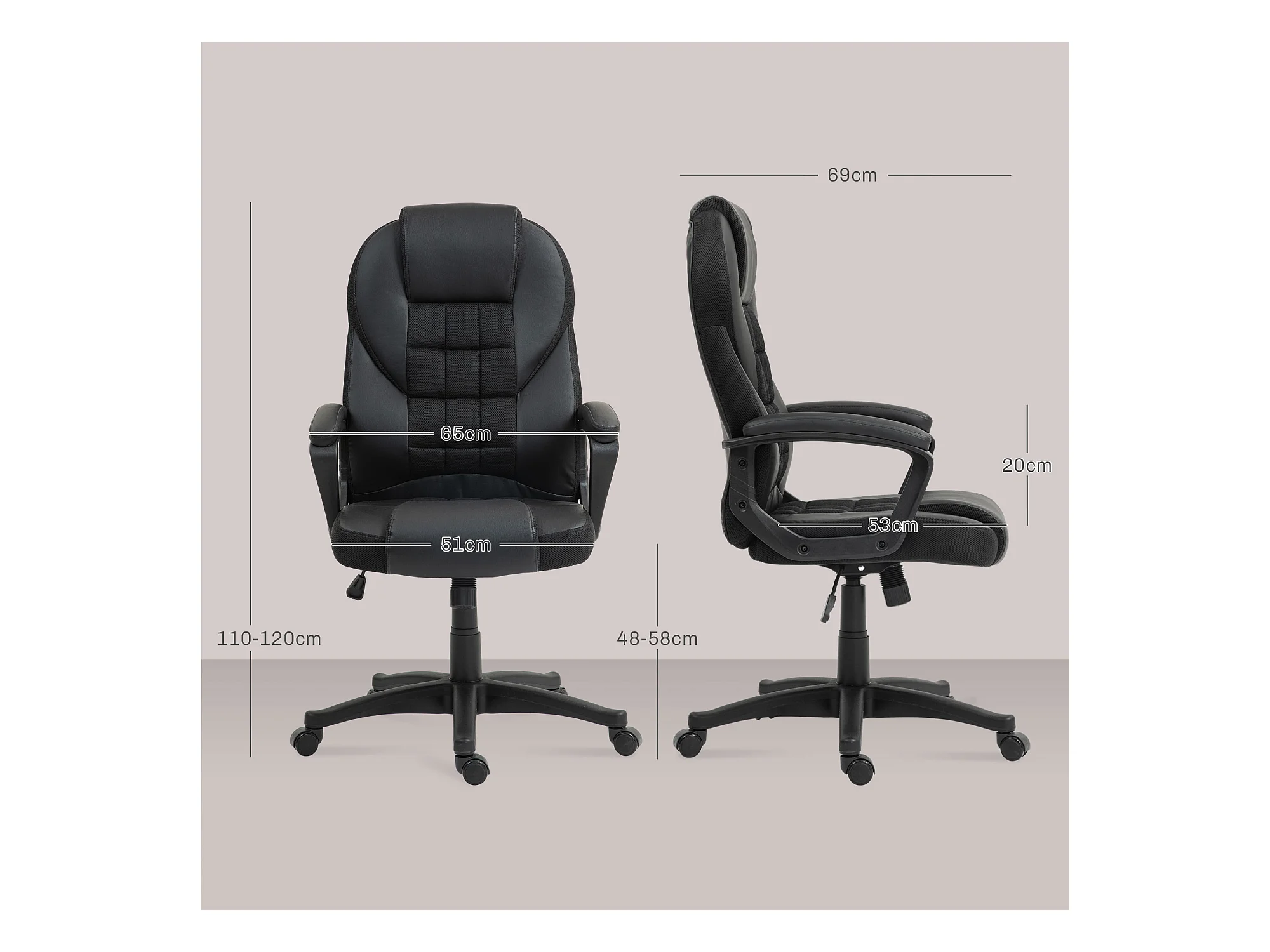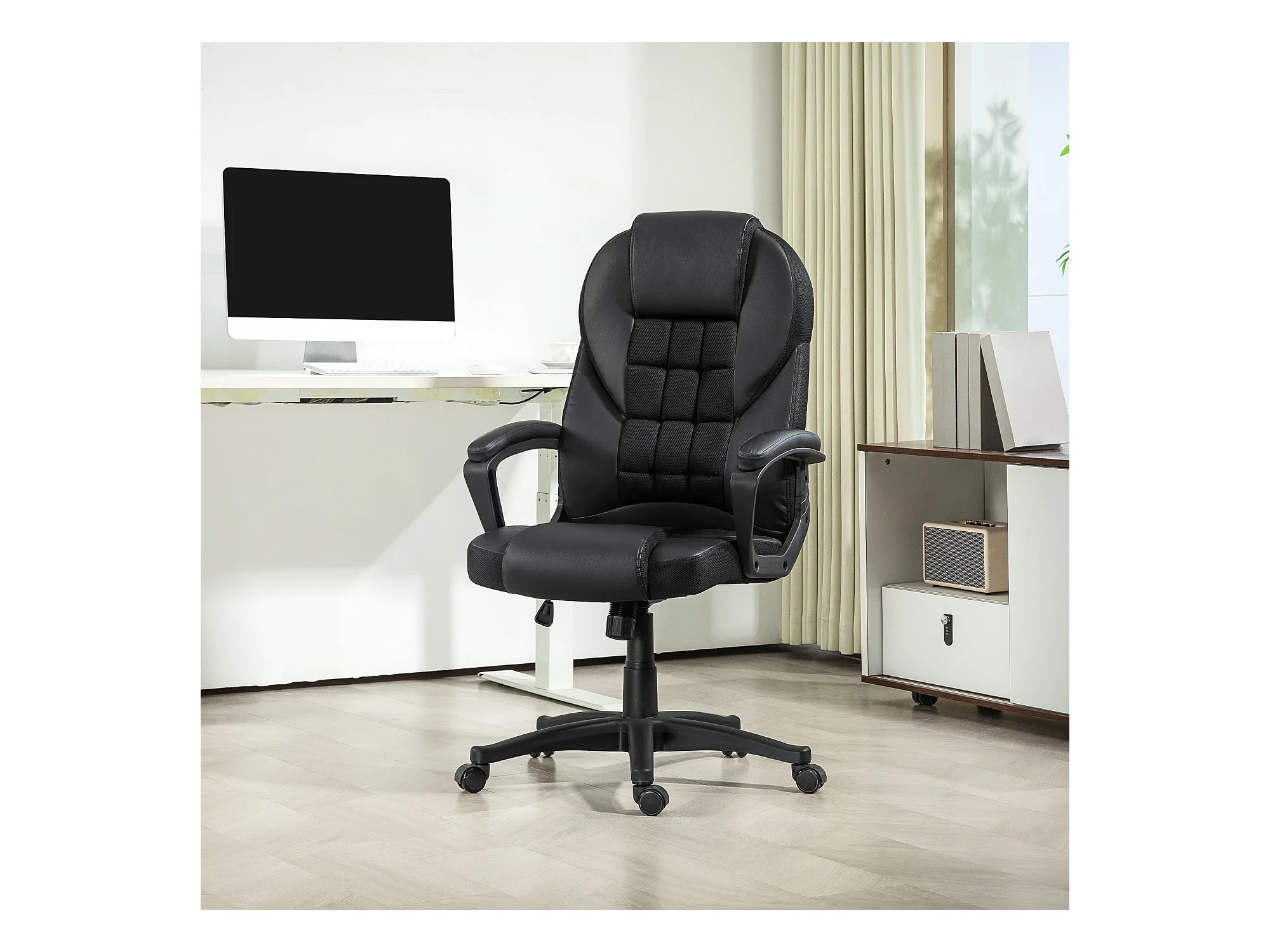 HOMCOM Fauteuil de bureau manager grand confort dossier ergonomique hauteur assise réglable pivotant tissu maille noir