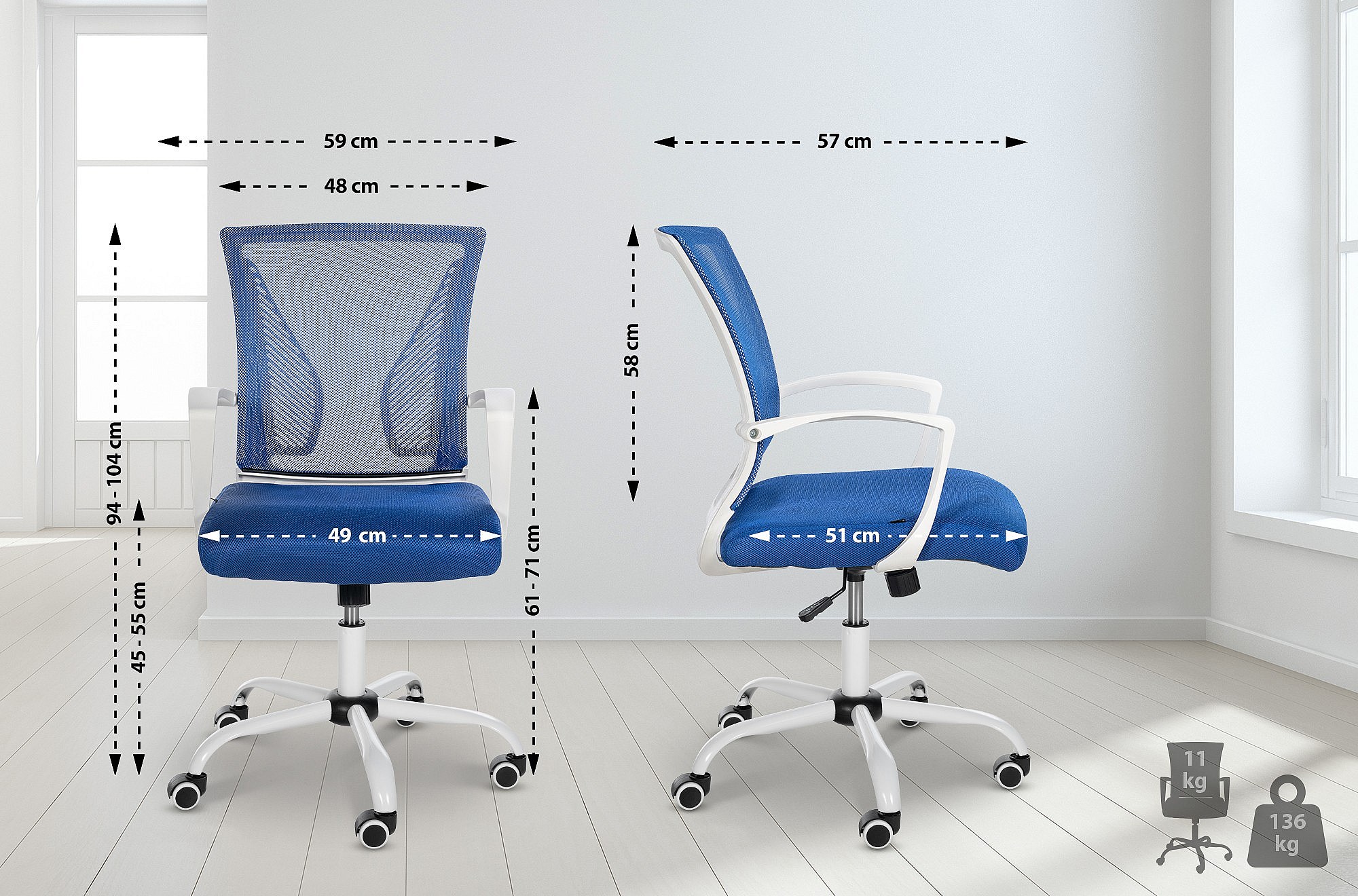 Chaise de bureau - Microfibre & Blanc - Bleu - Tracy