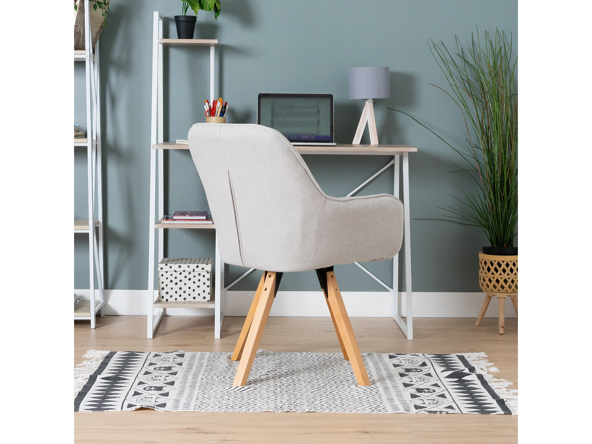 Chaise de bureau pivotant style scandinave en tissu pied en bois de hêtre,CARSONOFFICE