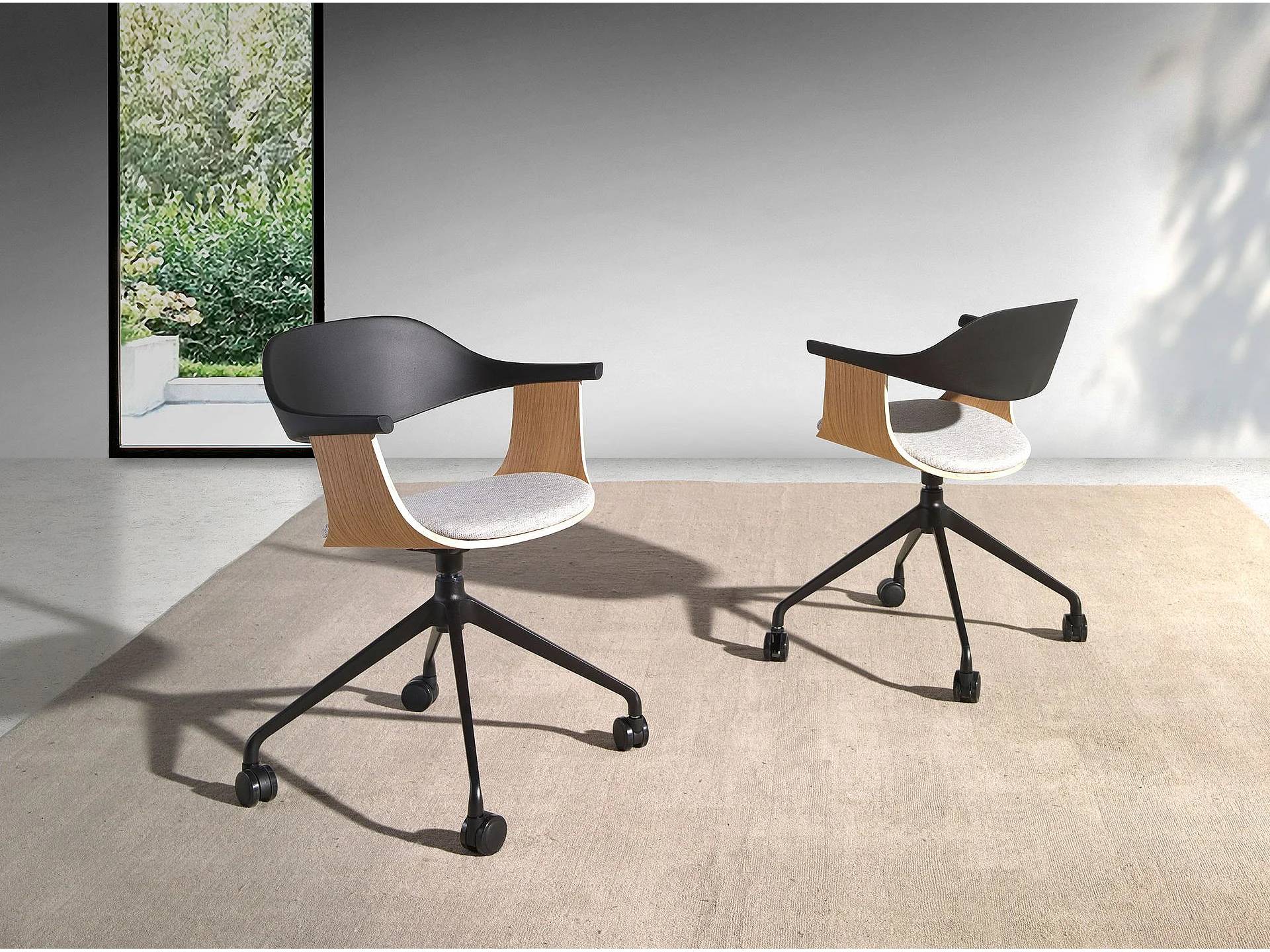 Chaise de bureau pivotante en tissu gris clair et pvc noir 4130 ANGEL CERDA