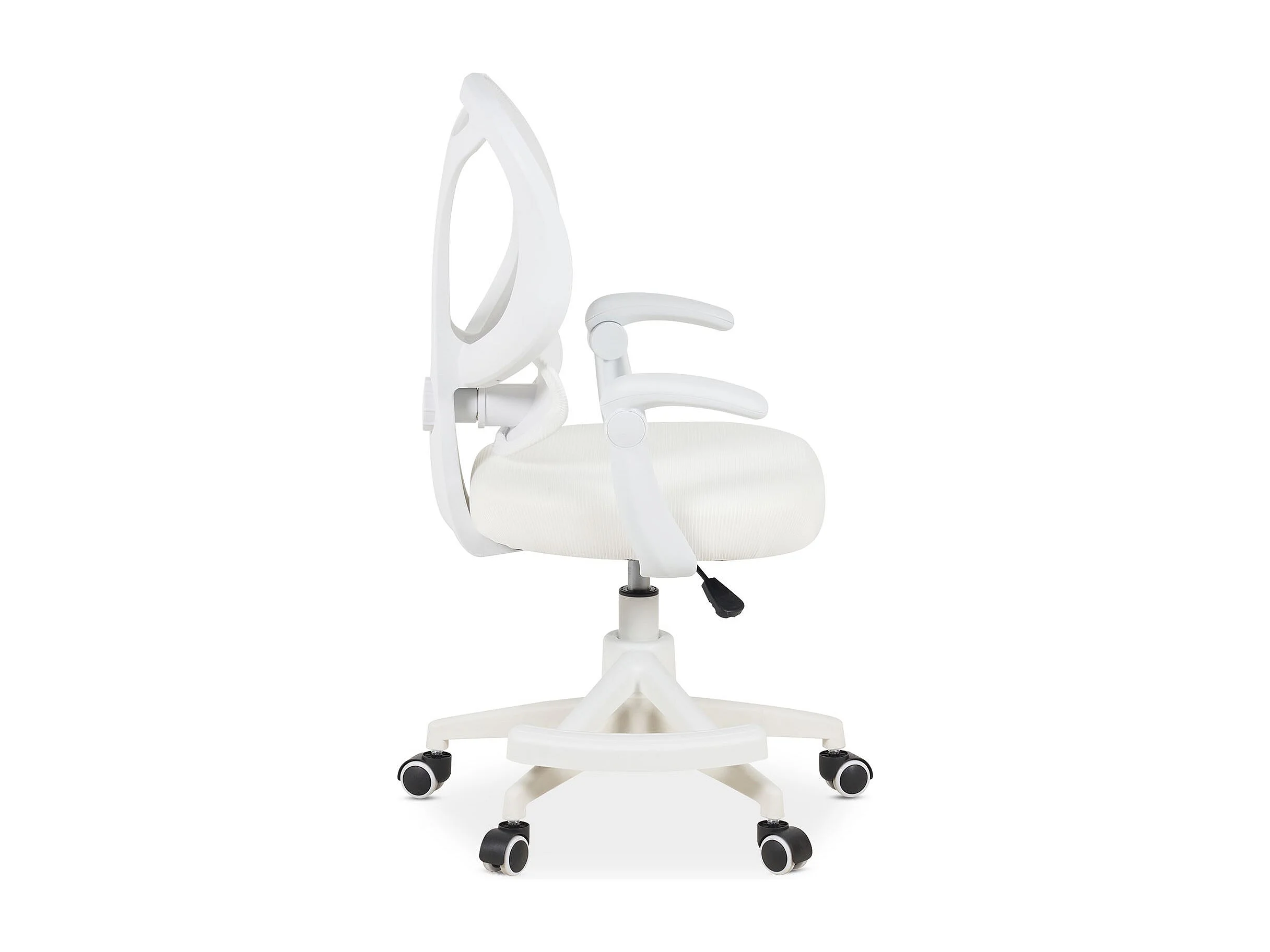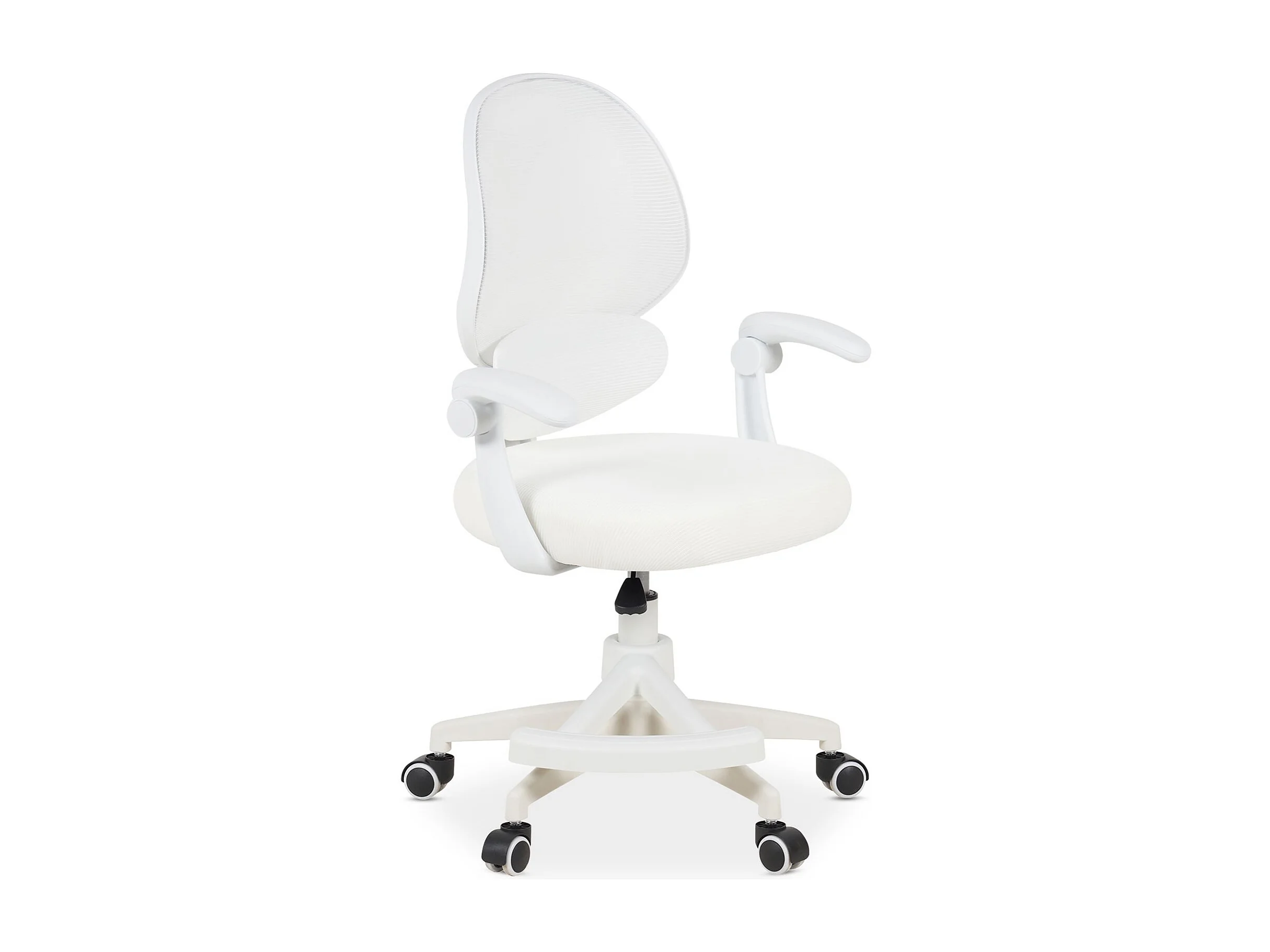 Chaise de Bureau pour Enfant ISLA Blanche Pivotante avec Repose-Pied et Accoudoirs, Assise Rembourrée et Réglable
