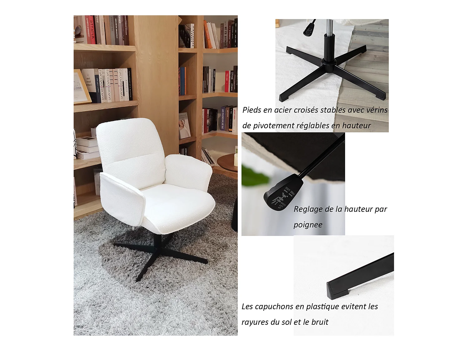 Chaise de bureau rotatif réglable en hauteur en bouclette