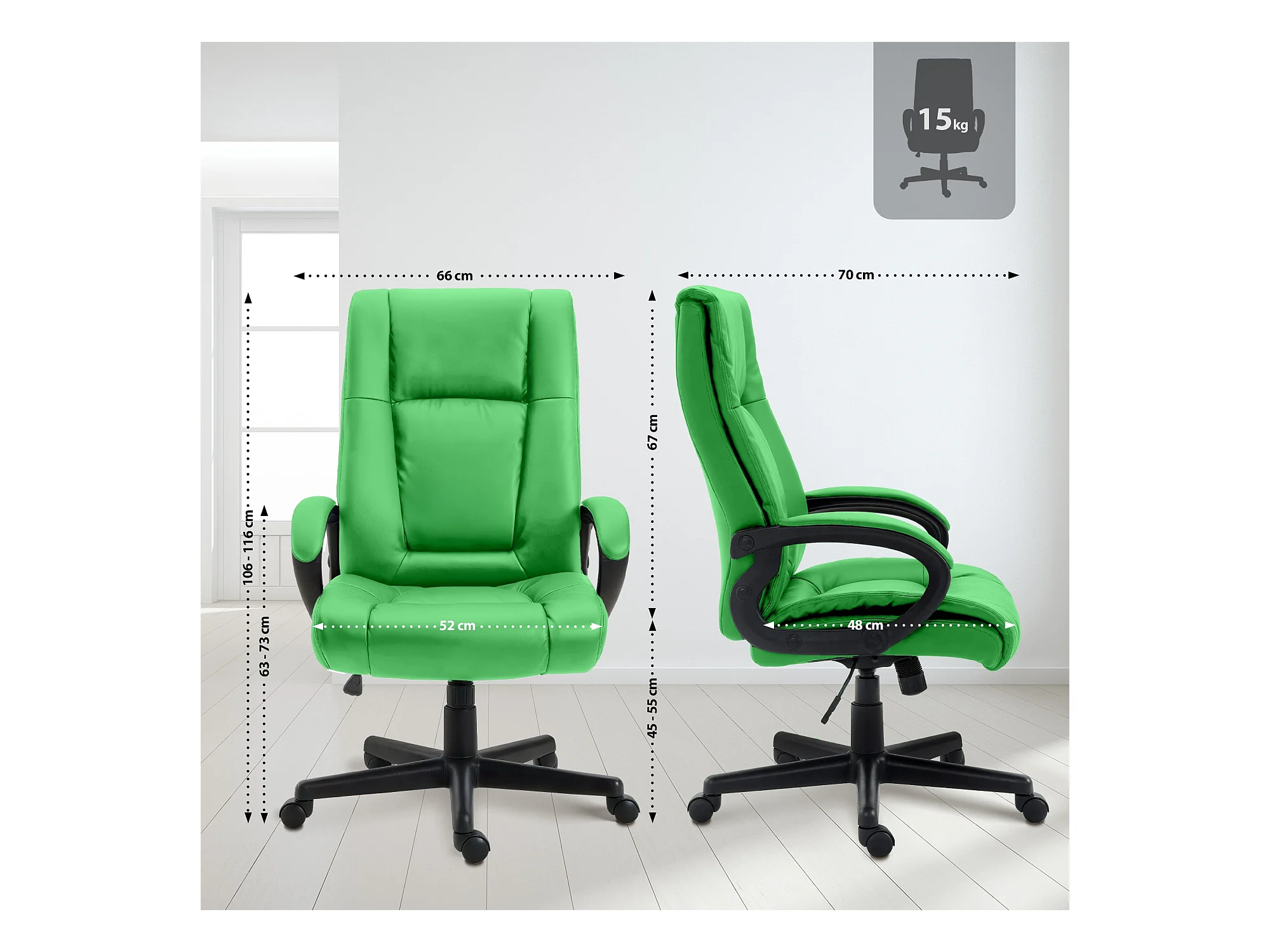 Chaise de bureau - Similicuir & Noir - Vert - XL Vaud