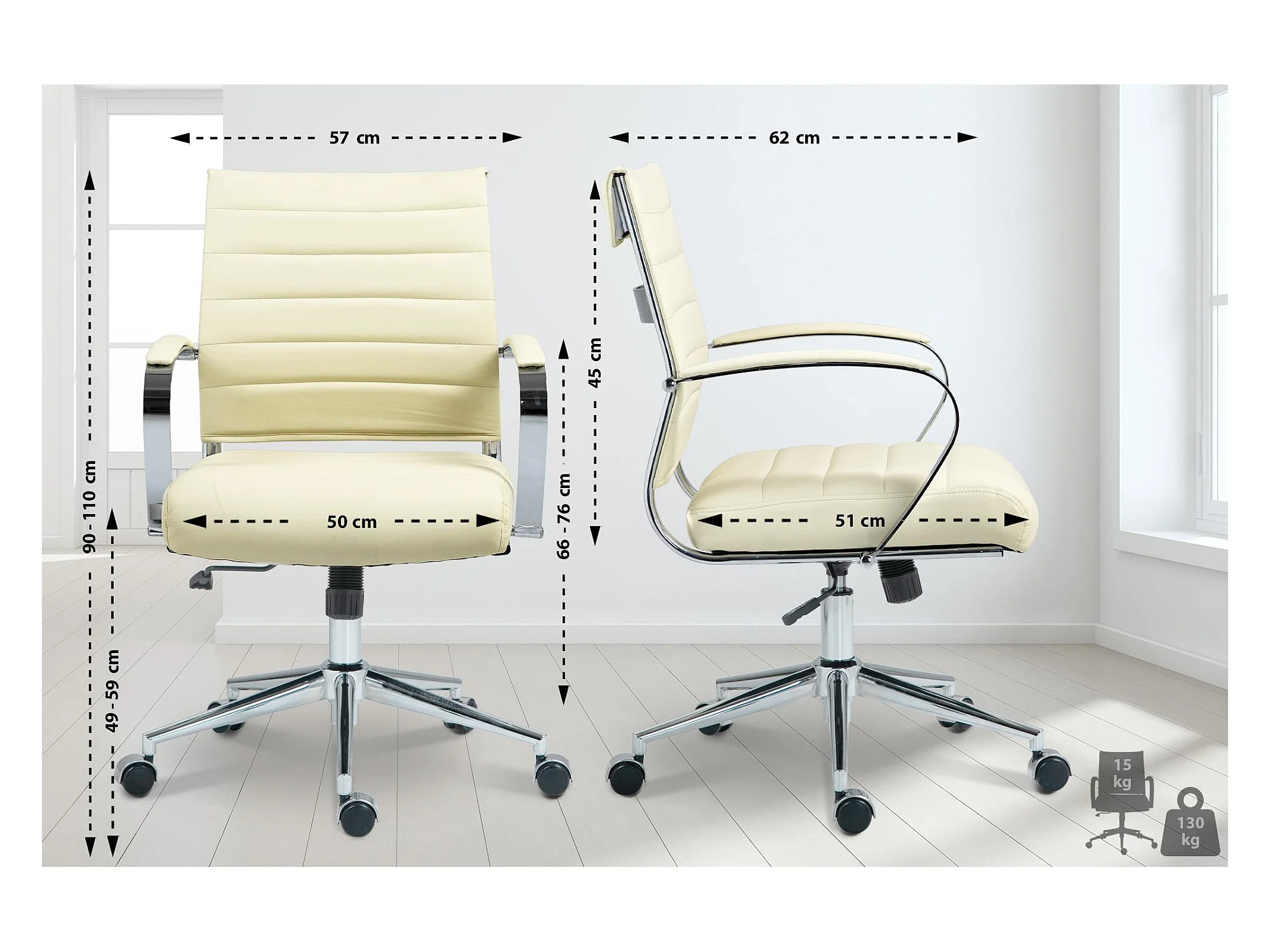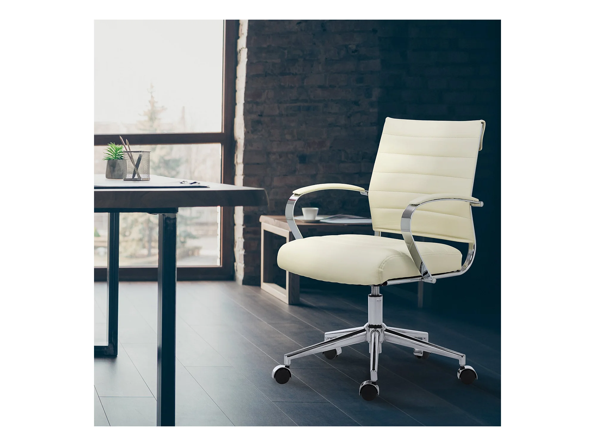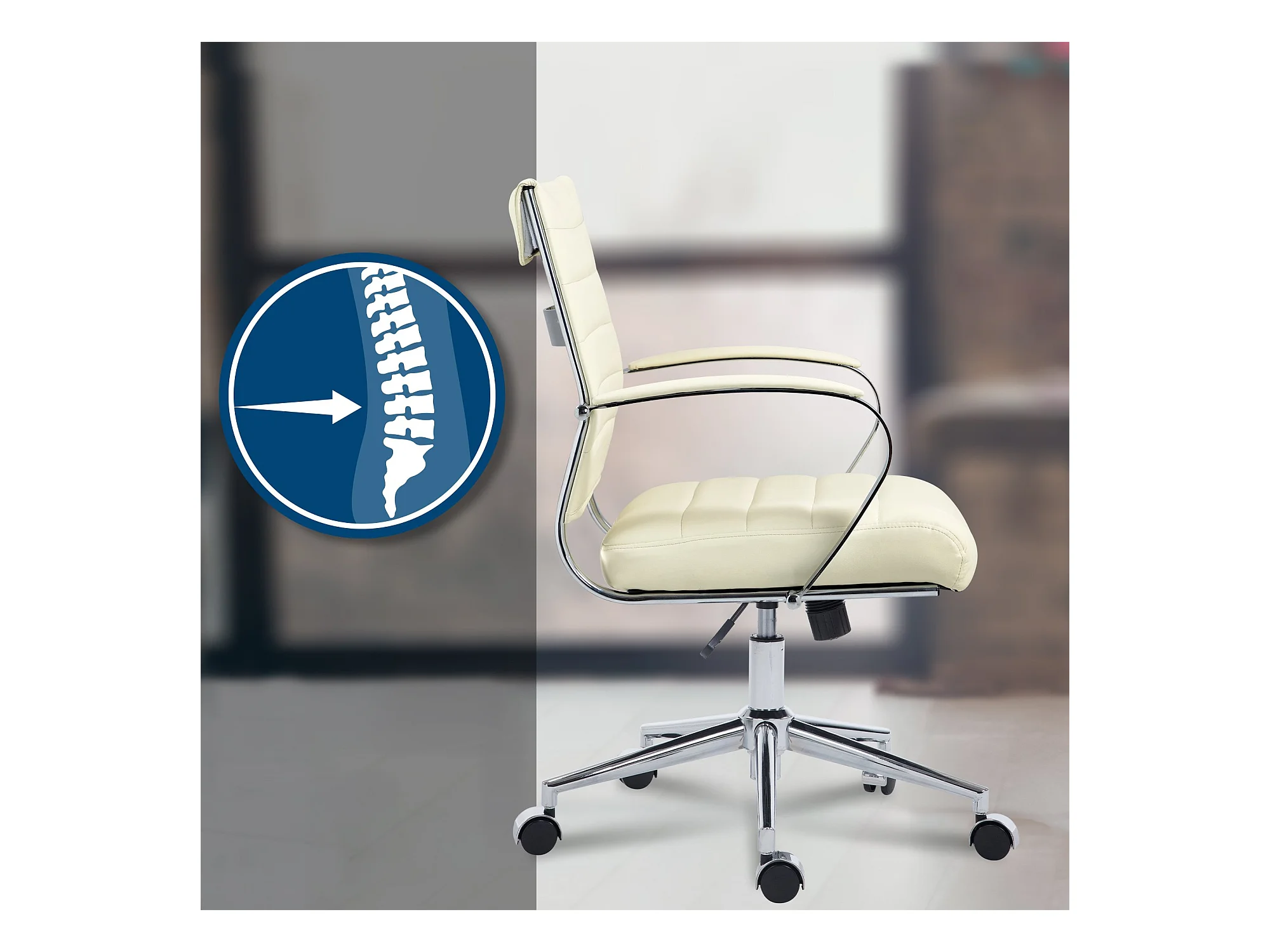 Chaise de bureau - Similicuir - Crème - Oakland