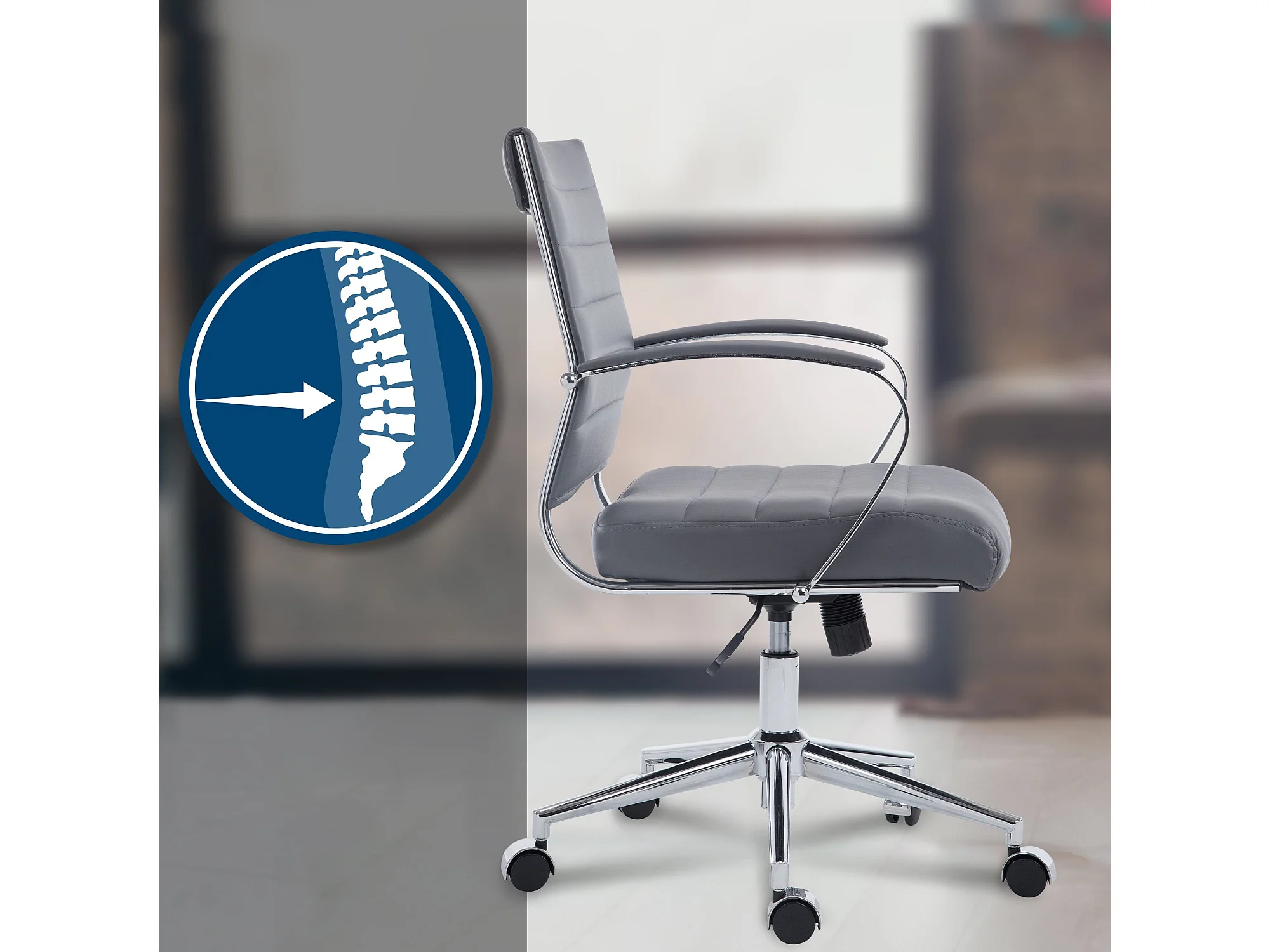 Chaise de bureau - Similicuir - Gris - Oakland