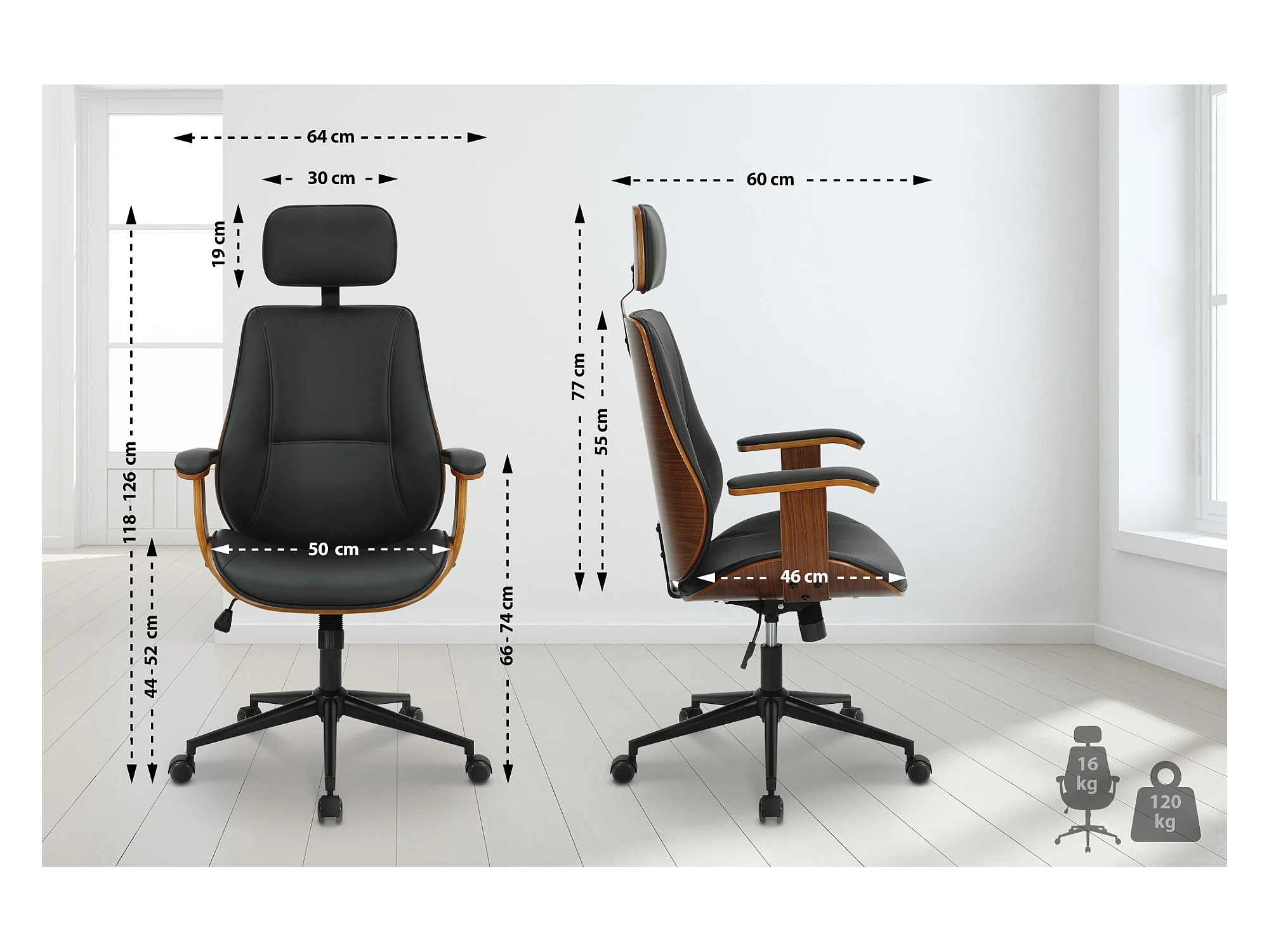 Chaise de bureau - Similicuir & Métal - Noyer / Noir - Lugo