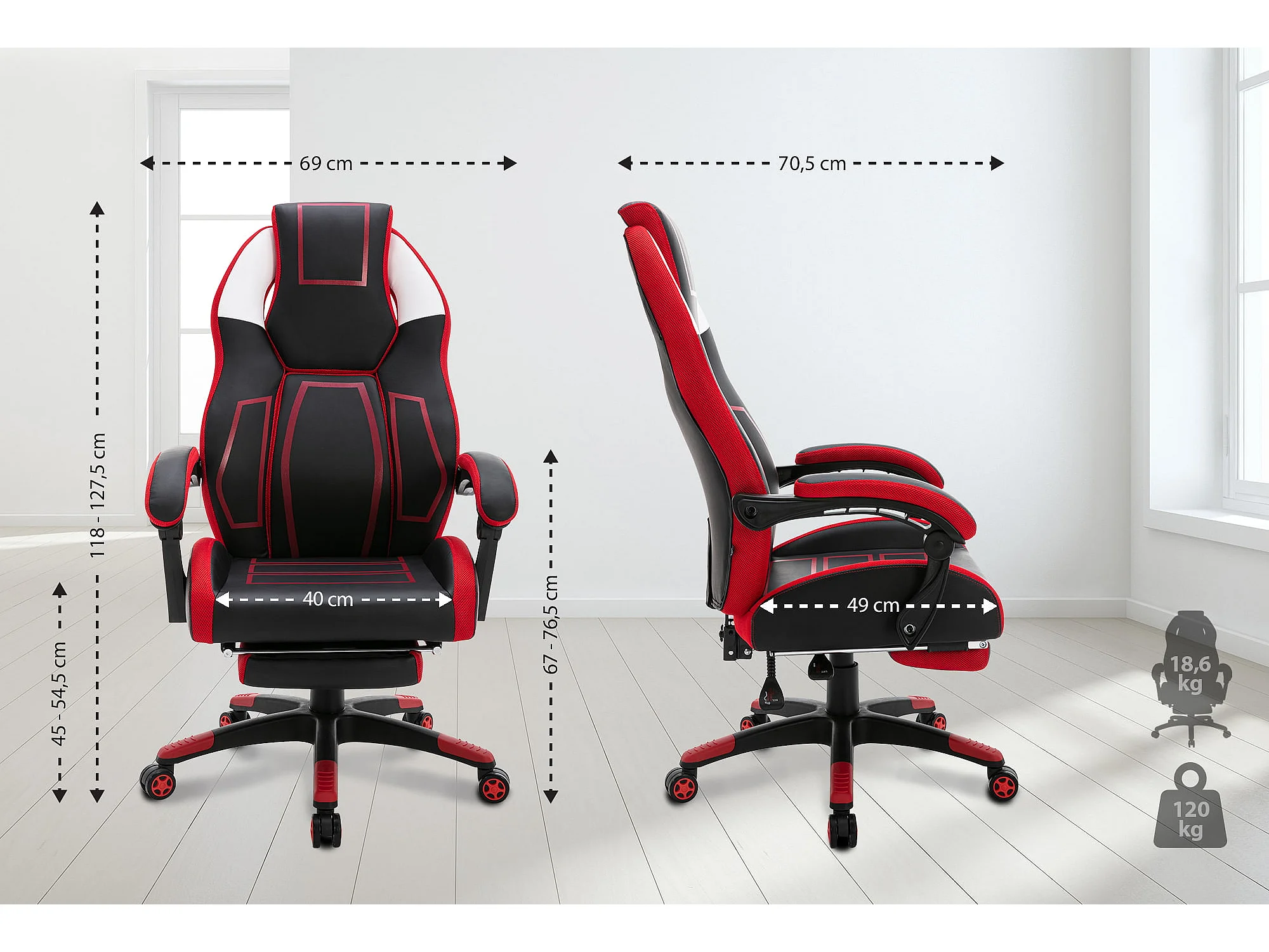 Chaise de bureau - Similicuir & Plastique - Noir / Rouge - XL Pedro