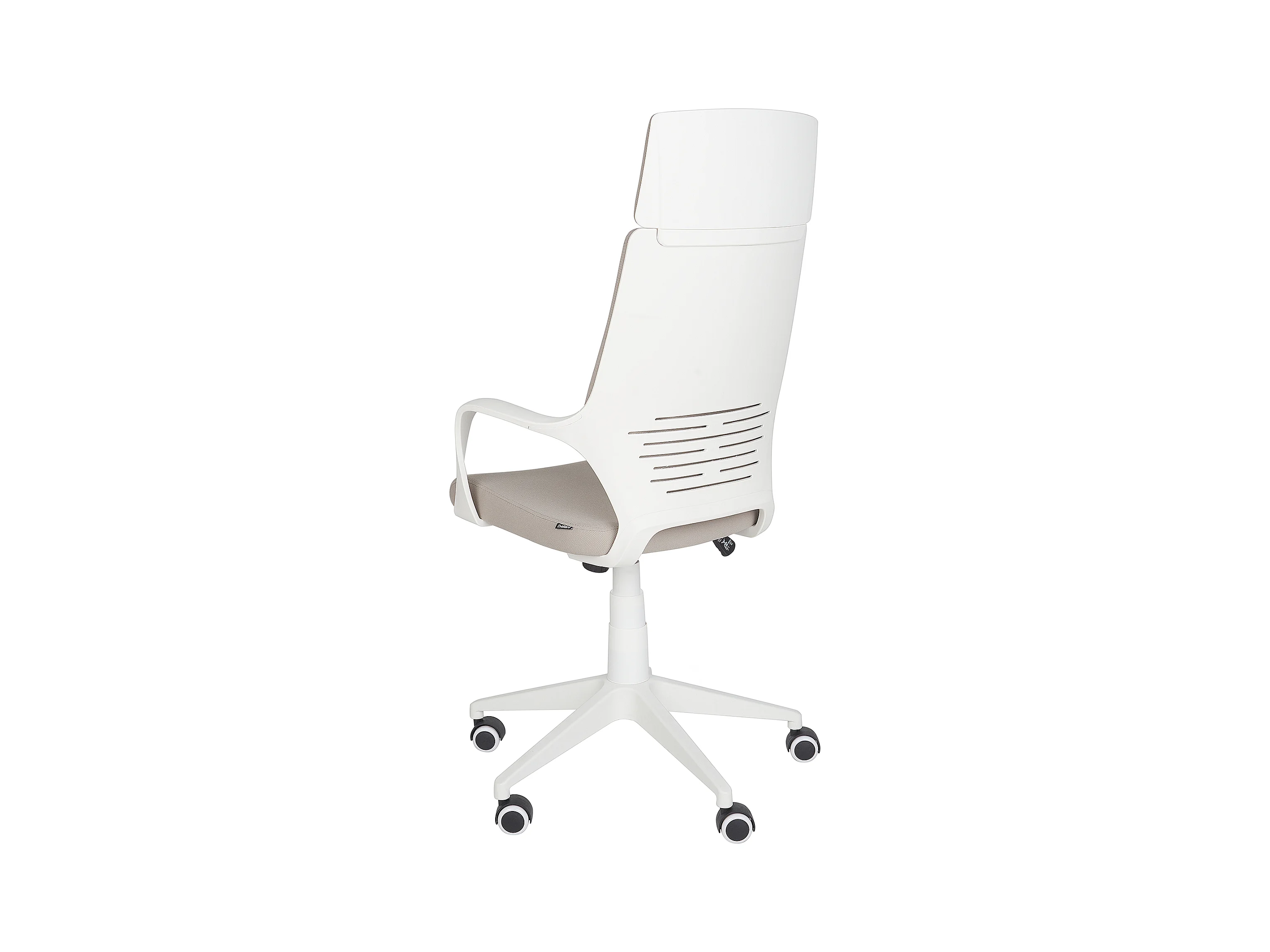 Chaise de bureau à roulettes en tissu beige et acier chromé SHANA