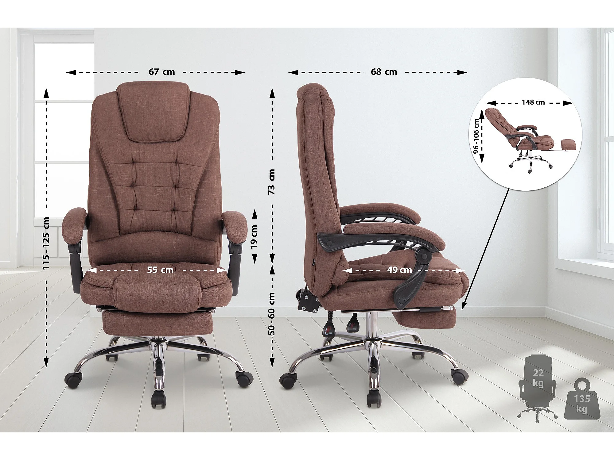 Chaise de bureau - Tissu - Marron - Oxygen