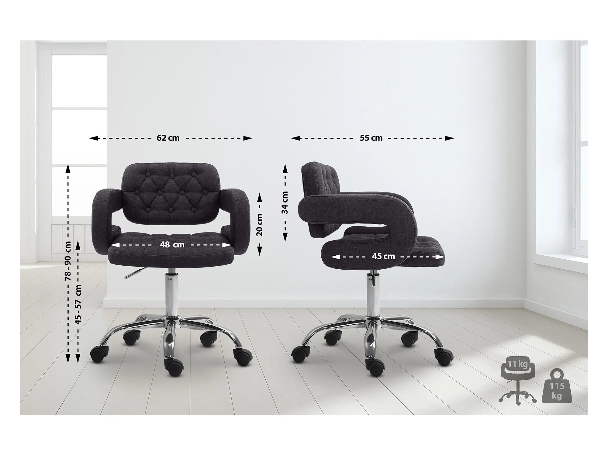 Chaise de bureau - Tissu & Métal chromé - Noir - Dublin