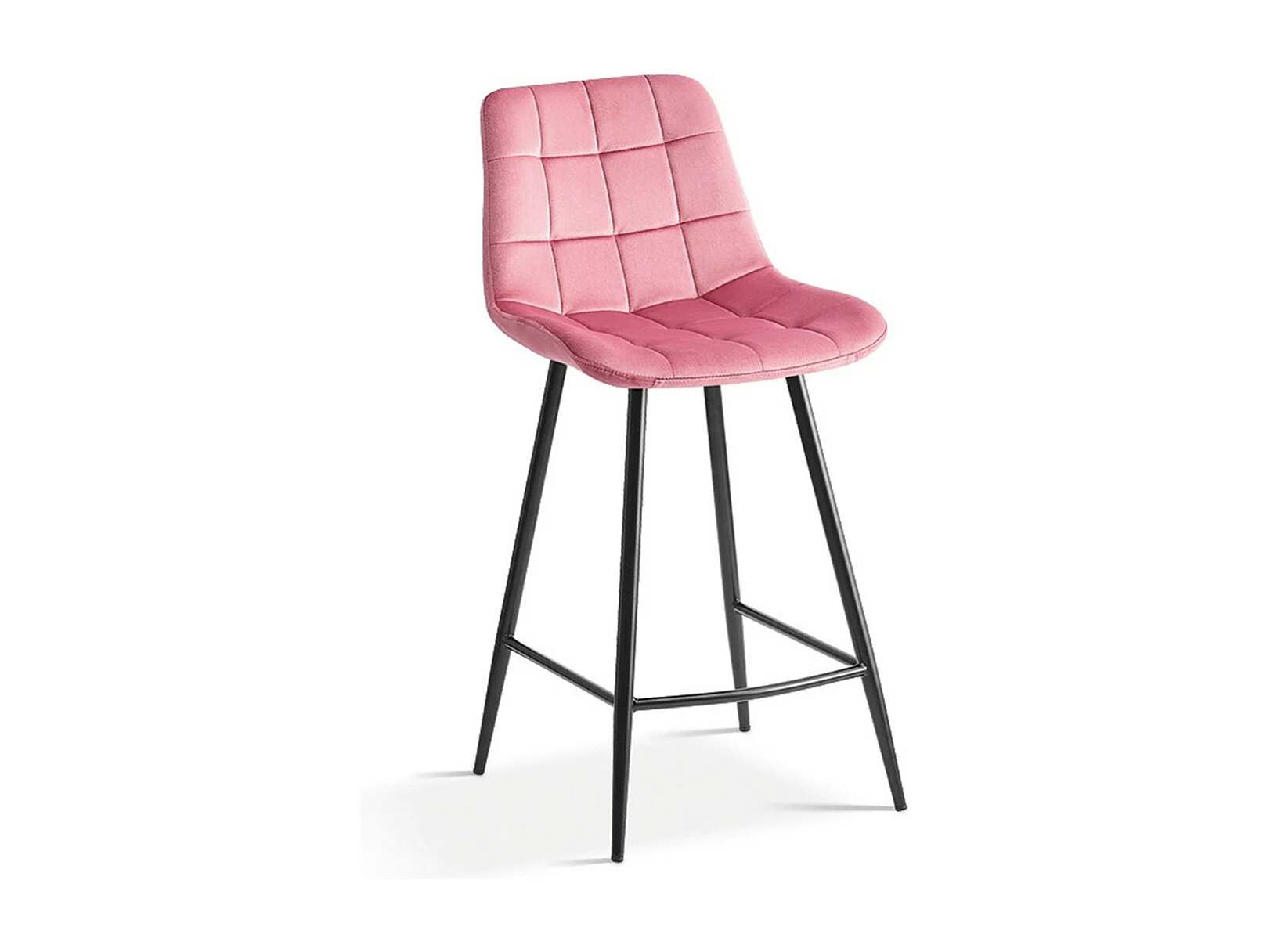 Chaise de comptoir JUTE – Velours rose – Pieds en métal – Hauteur 95 cm – Style contemporain