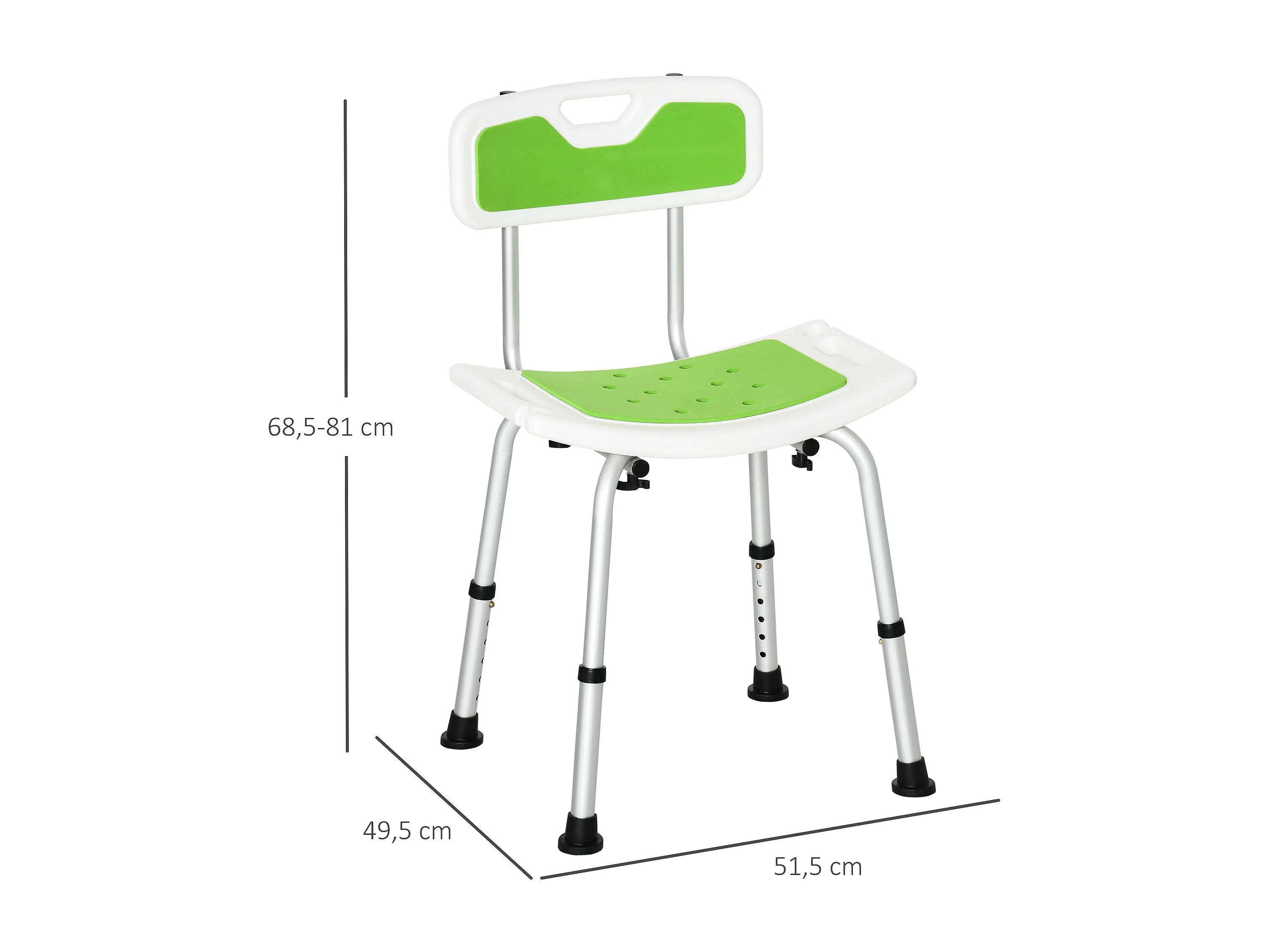 Siège de douche réglable en hauteur tabouret de douche ergonomique pieds antidérapants charge max. 135 Kg alu HDPE blanc vert