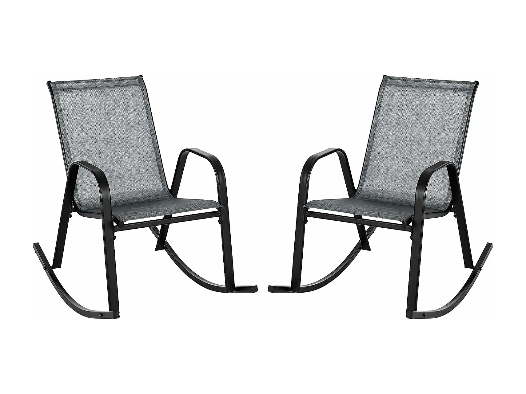 Chaise de Jardin à Bascule Lot de 2, Fauteuil à Bascule avec Accoudoirs, Cadre en Métal, Rocking Chair Ergonomique pour Jardin, Piscine, 91 x 62 x 86 cm (Gris)