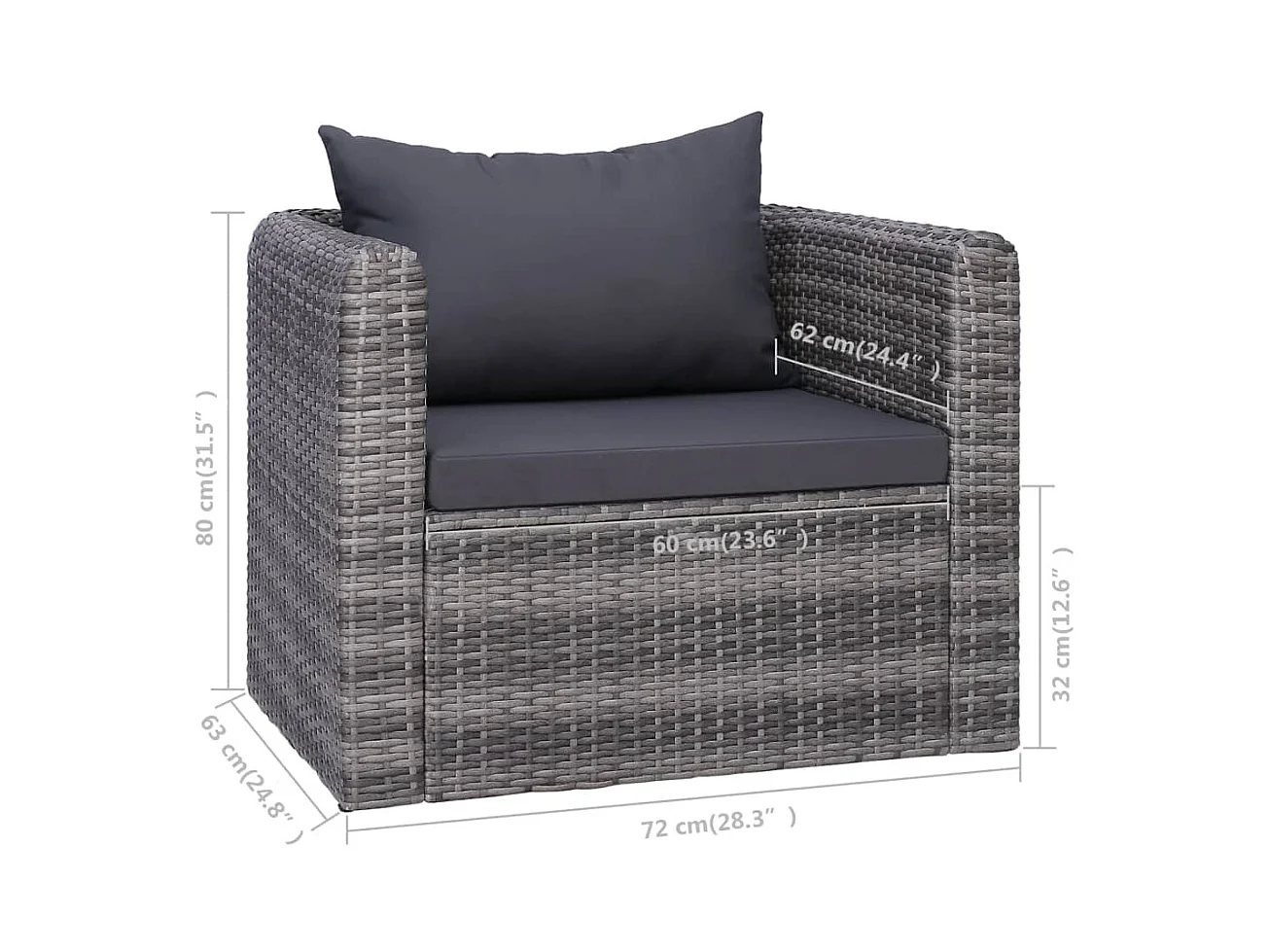 Chaise de jardin avec coussin et oreiller Résine tressée Gris