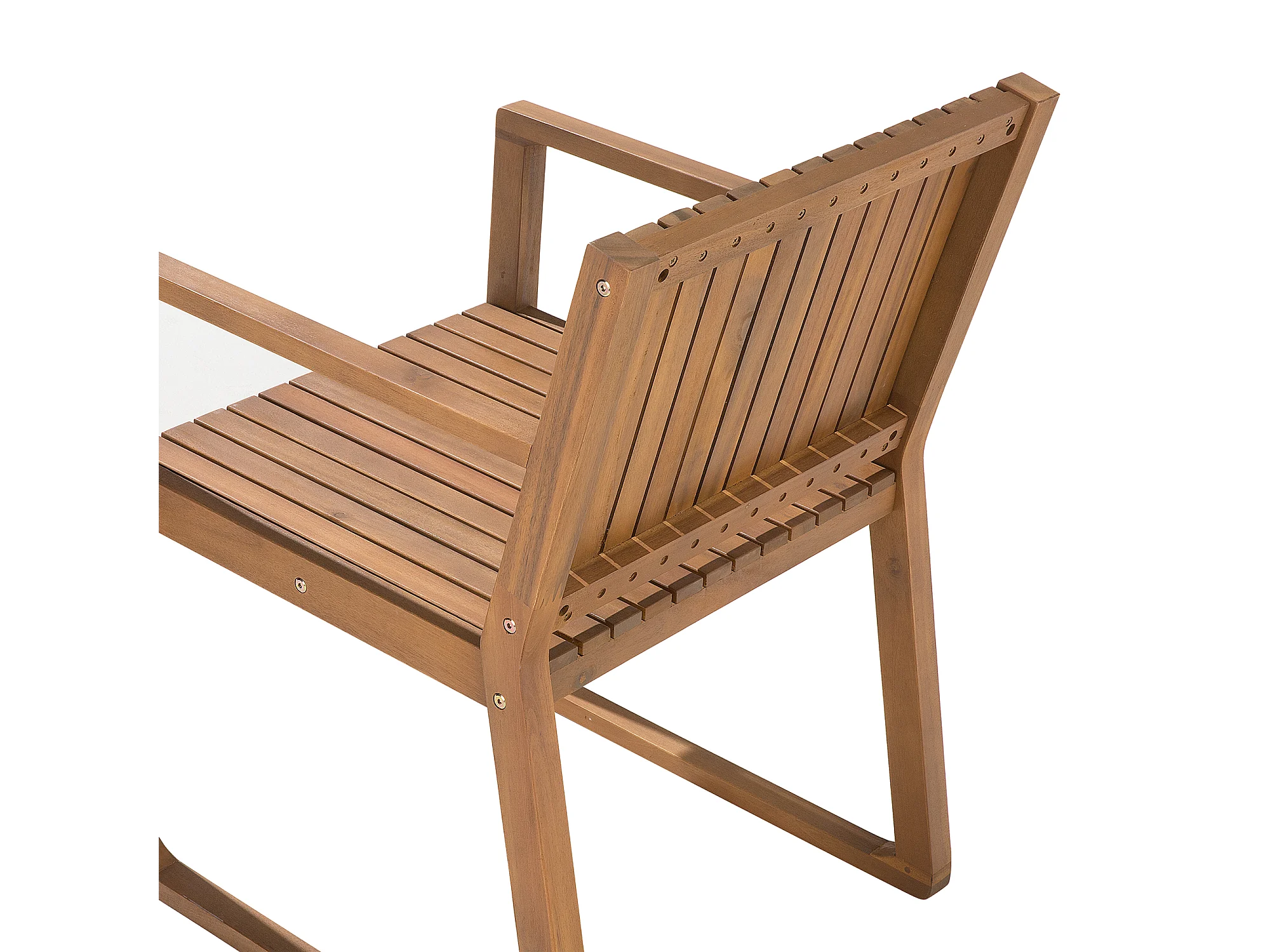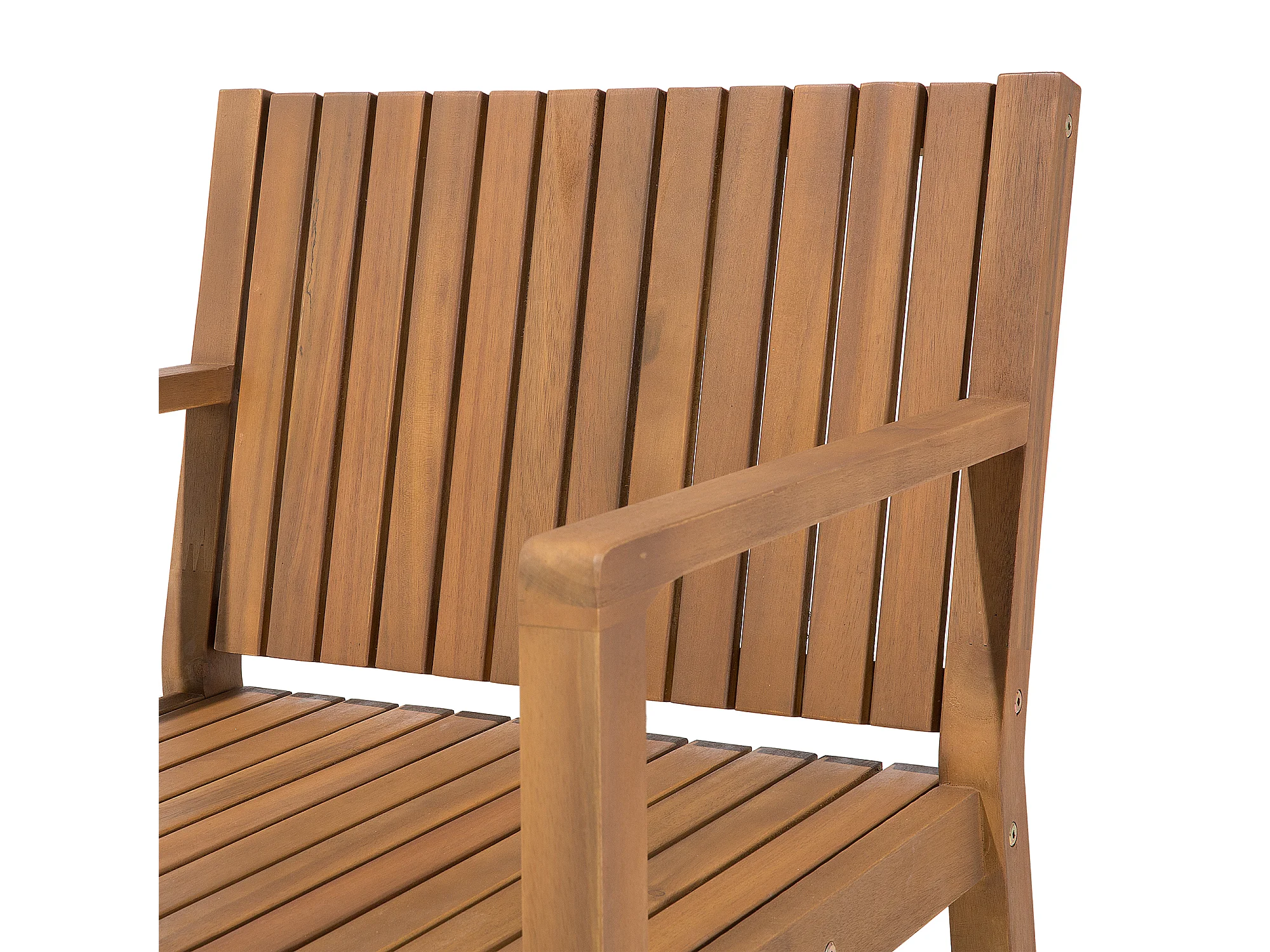 Banc de jardin 2 places style rural chic assise dossier à lattes bois sapin lasuré châssis fonte alu noir