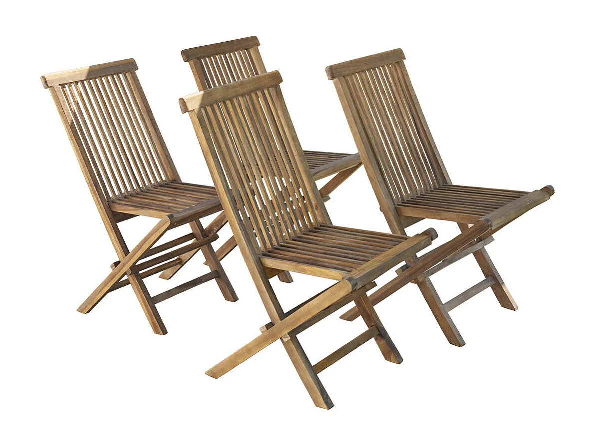 Lot de 4 chaises de jardin en teck huilé massif pliante