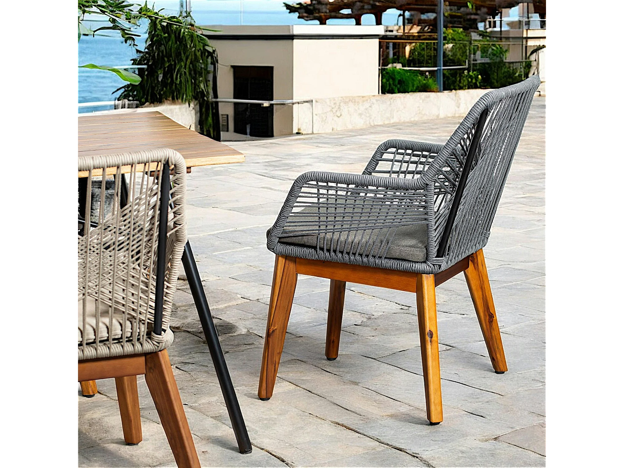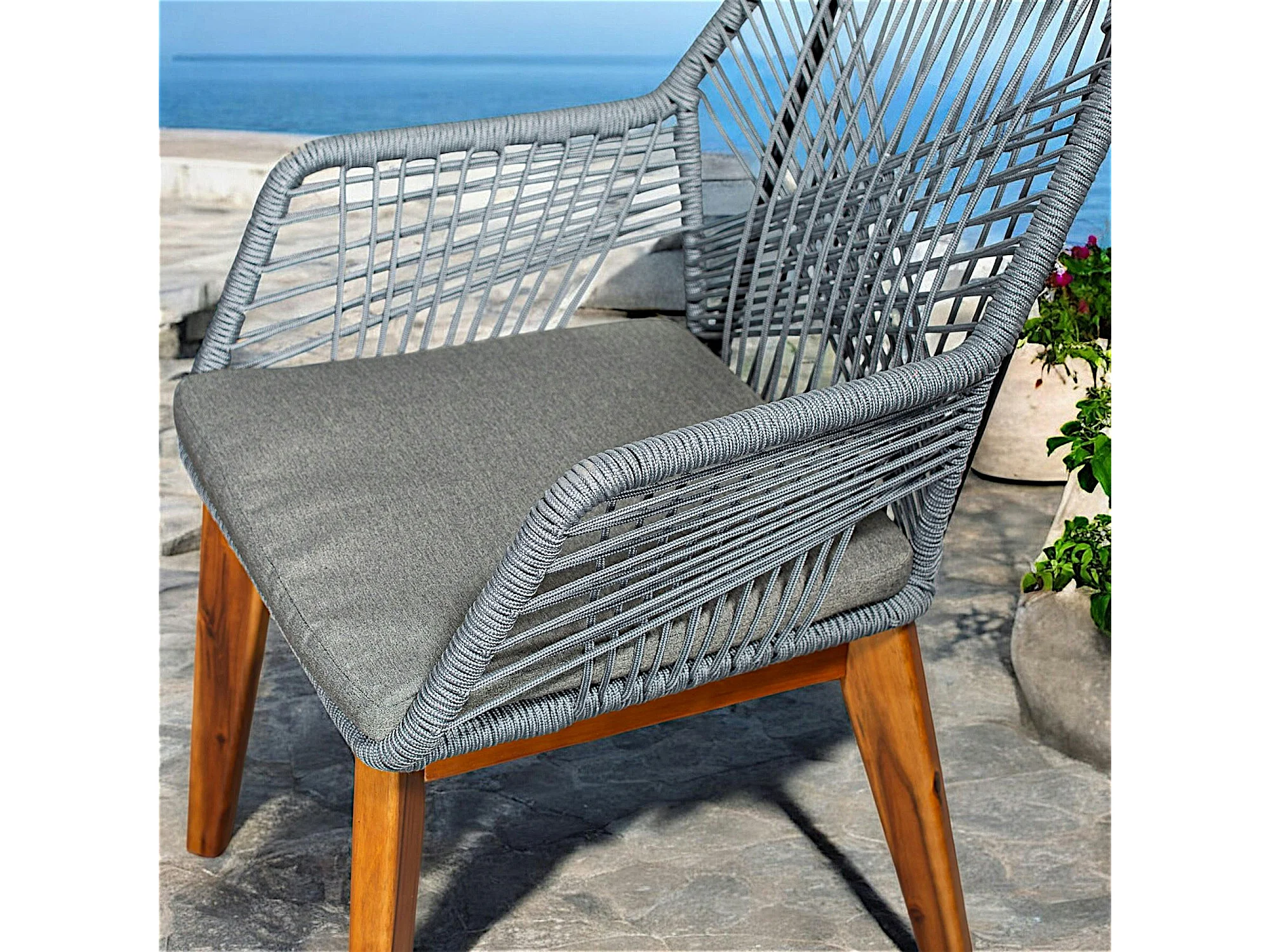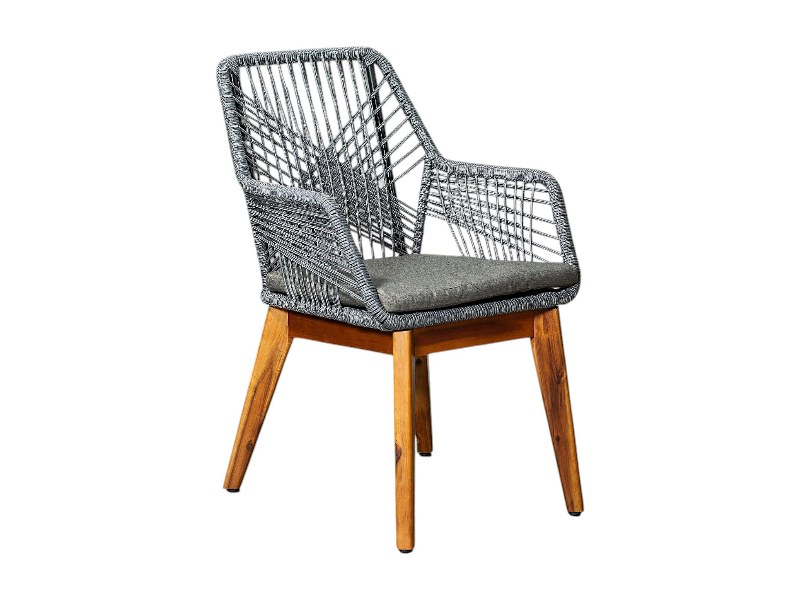 Chaise de jardin grise en corde tressée et pieds bois FSC® GRENADE