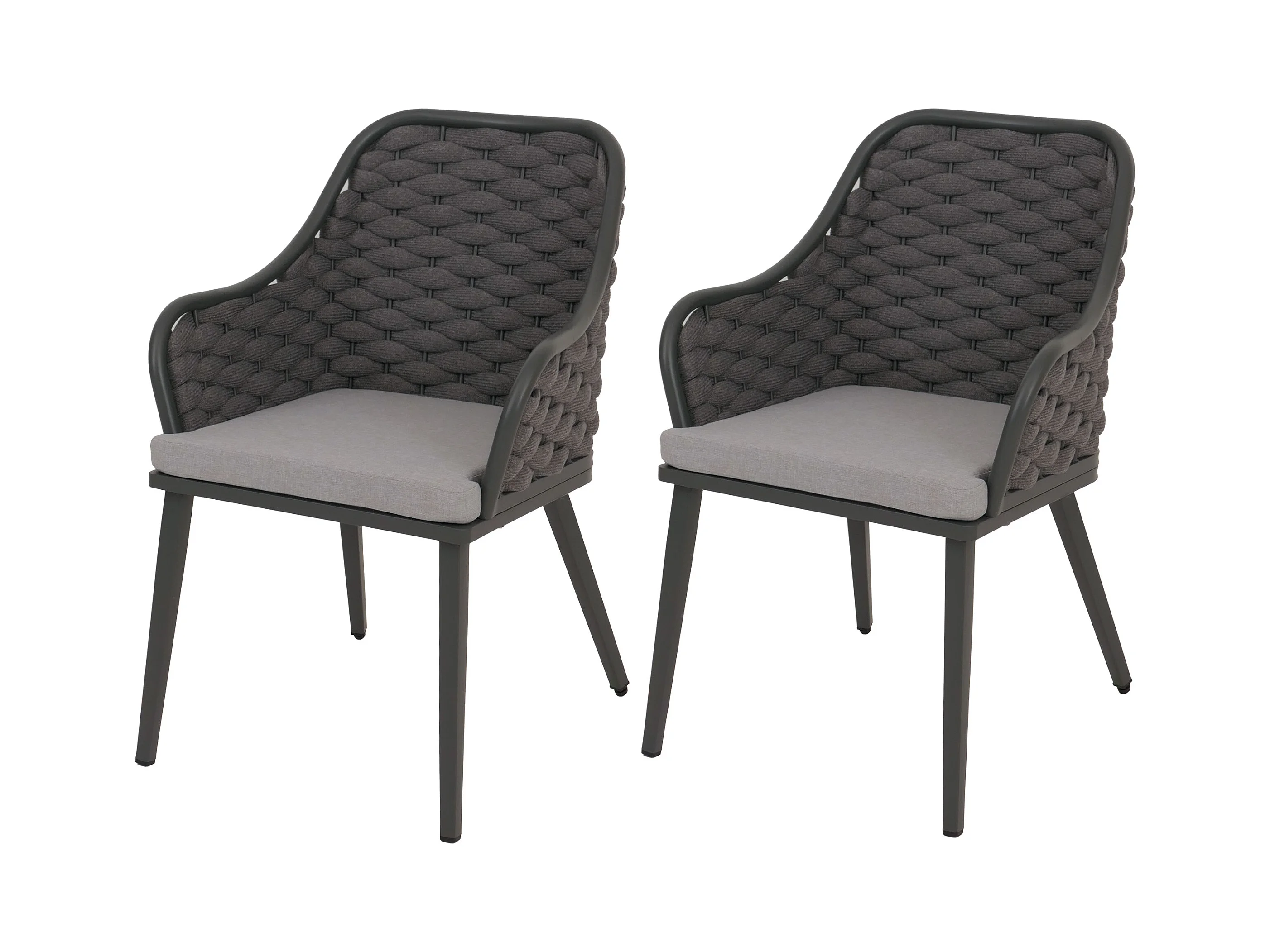Chaise de jardin MCW-O16 (lot de 2), anthracite Coussin gris clair