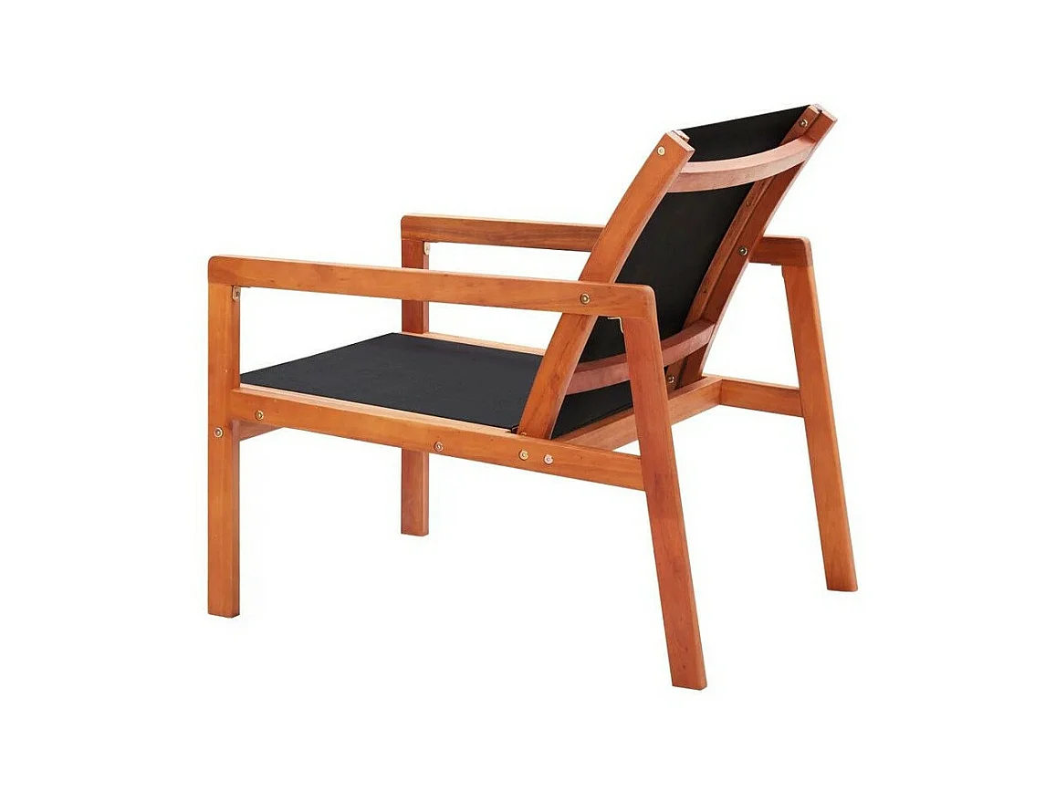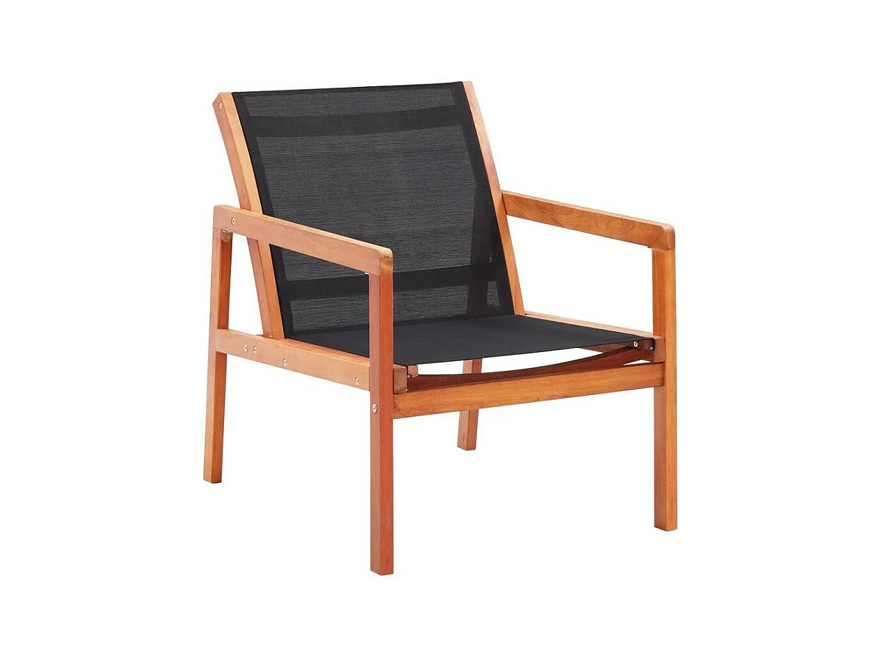 Chaise de jardin textilène noir et eucalyptus massif clair Teis