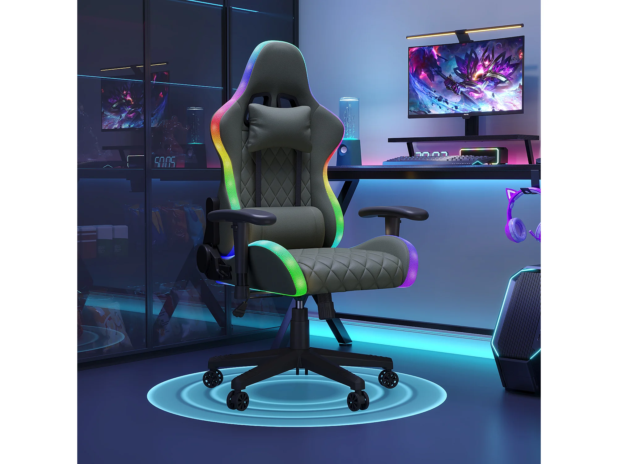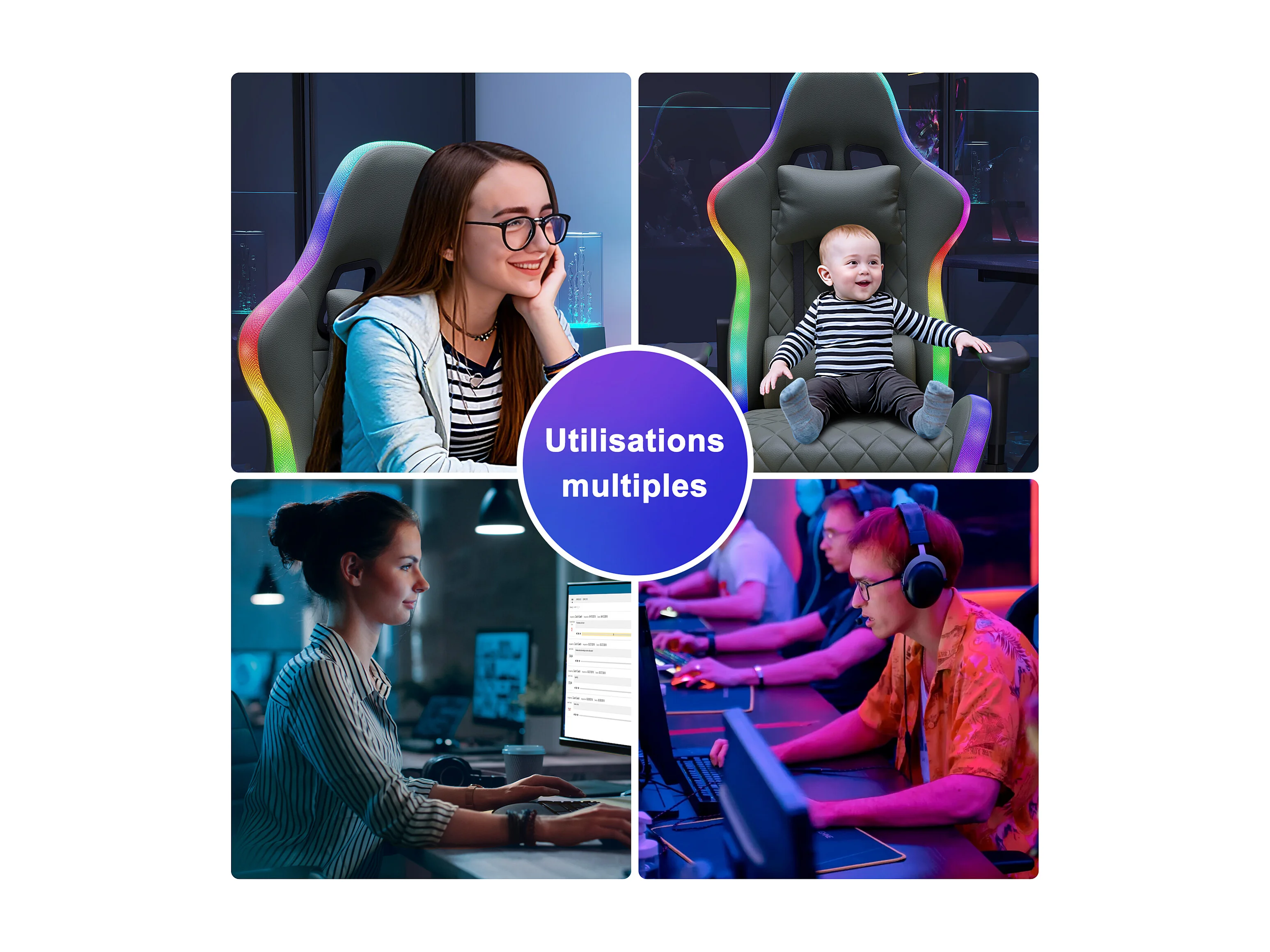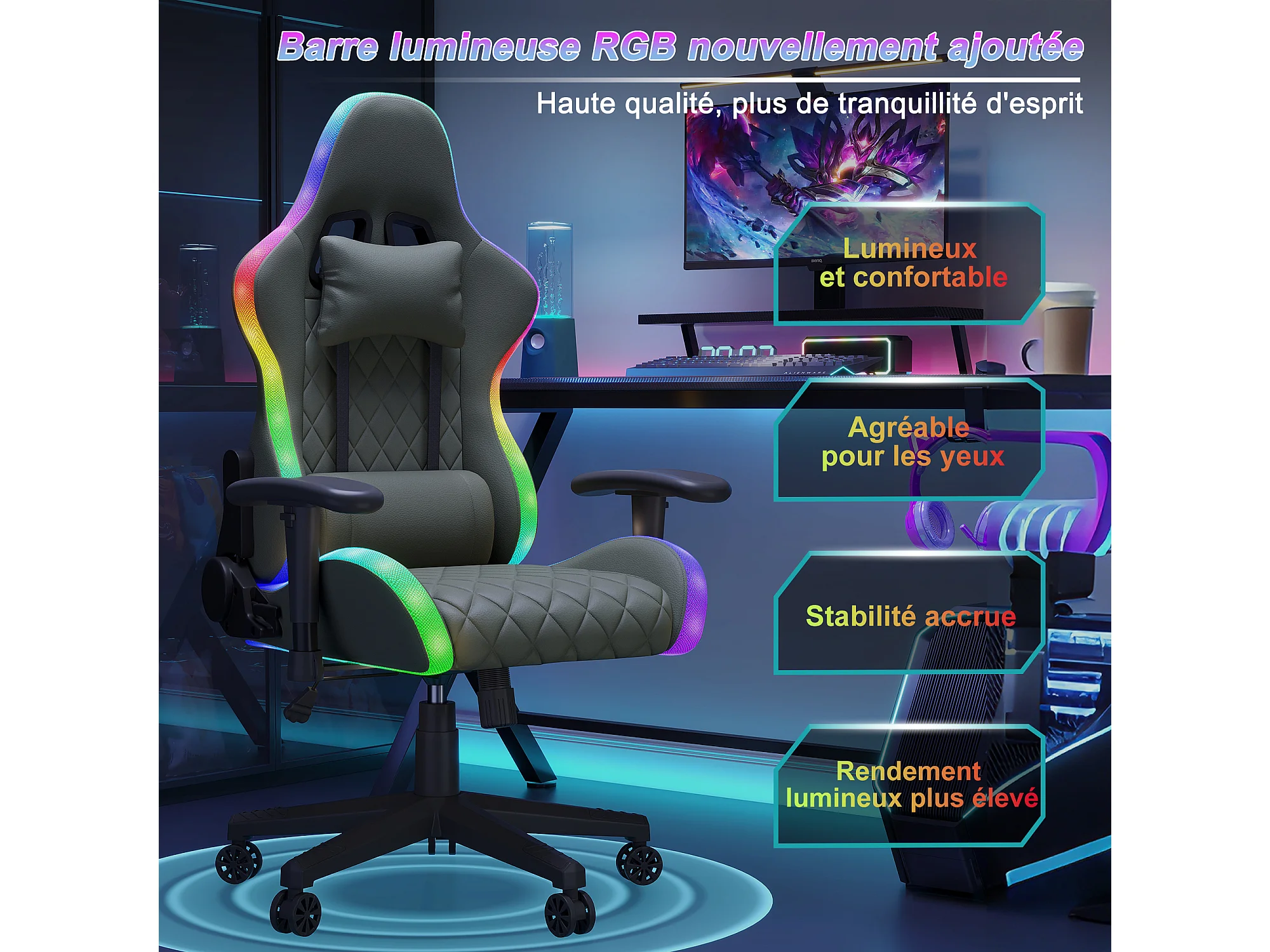 Chaise de jeu avec éclairage LED - accoudoirs 2D et dossier réglable - Chaise de bureau - Noir