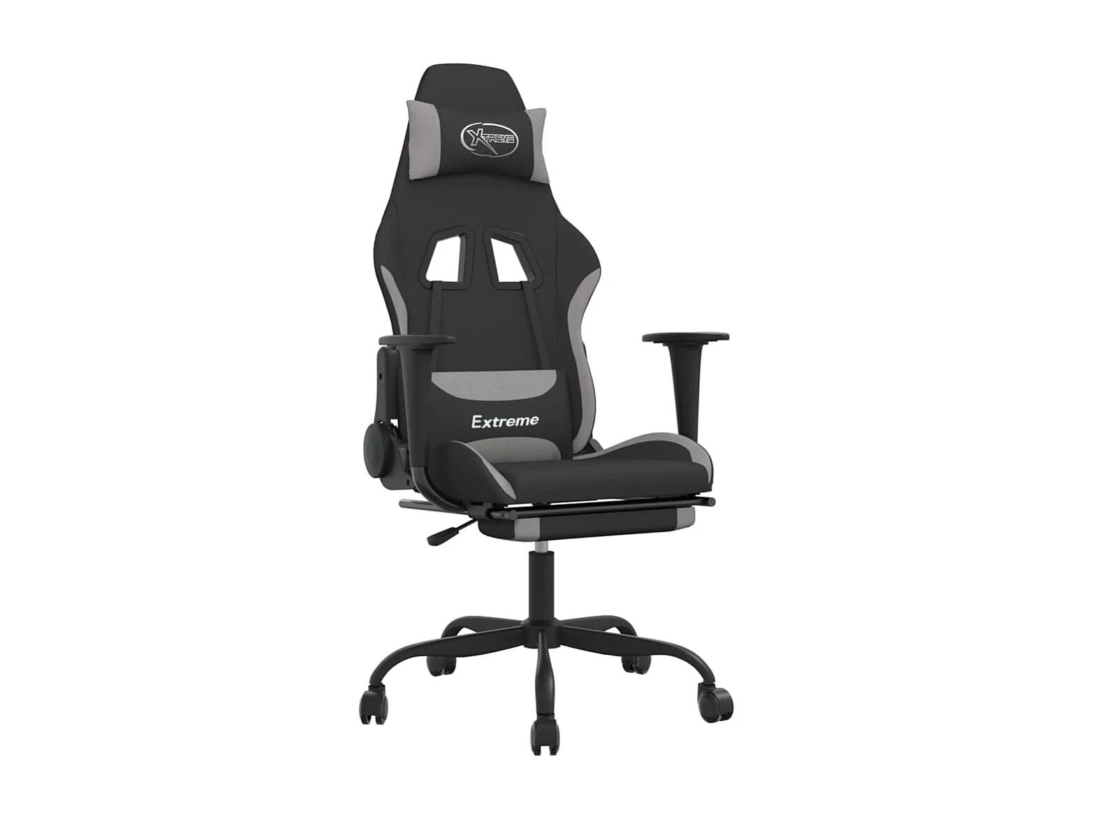 Chaise de jeu avec repose-pied Noir et gris clair Tissu