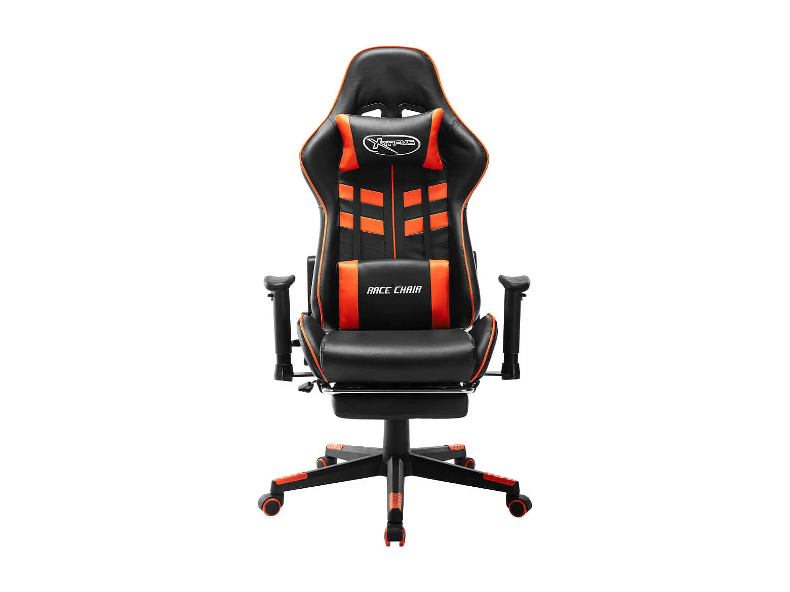 Chaise de jeu avec repose-pied Noir et orange Cuir artificiel