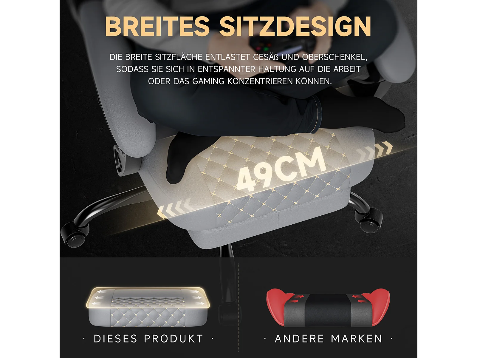 Chaise de jeu avec repose-pieds - siège réglable en hauteur - chaise de bureau - gris