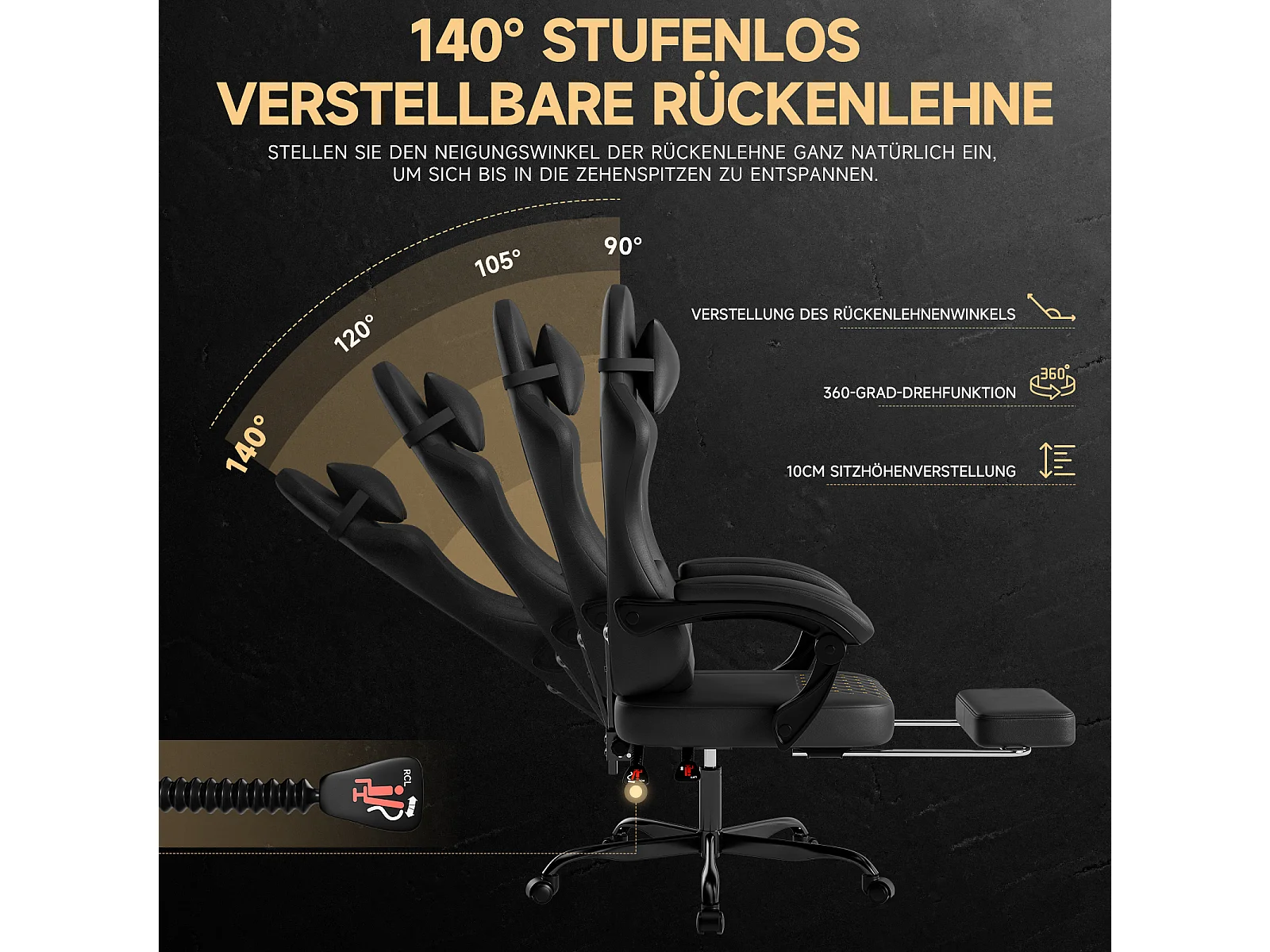 Chaise de jeu avec repose-pieds - siège réglable en hauteur - chaise de bureau - noir