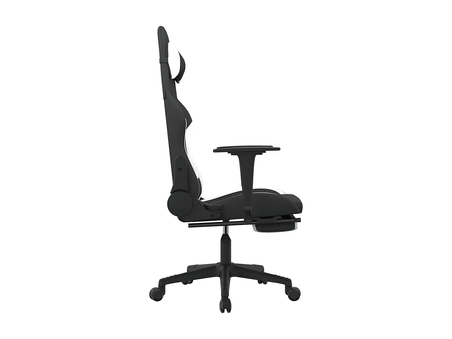 Chaise de jeu de massage avec repose-pied Noir et blanc Tissu