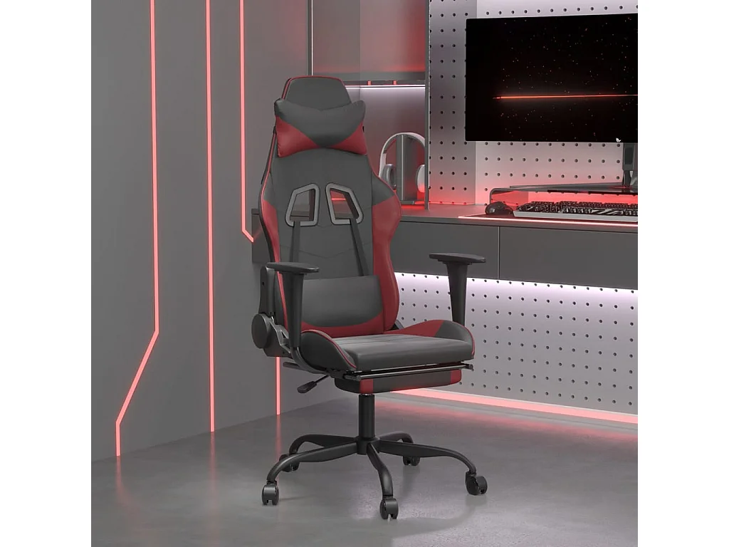 Chaise de jeu de massage repose-pied Noir&Bordeaux Similicuir
